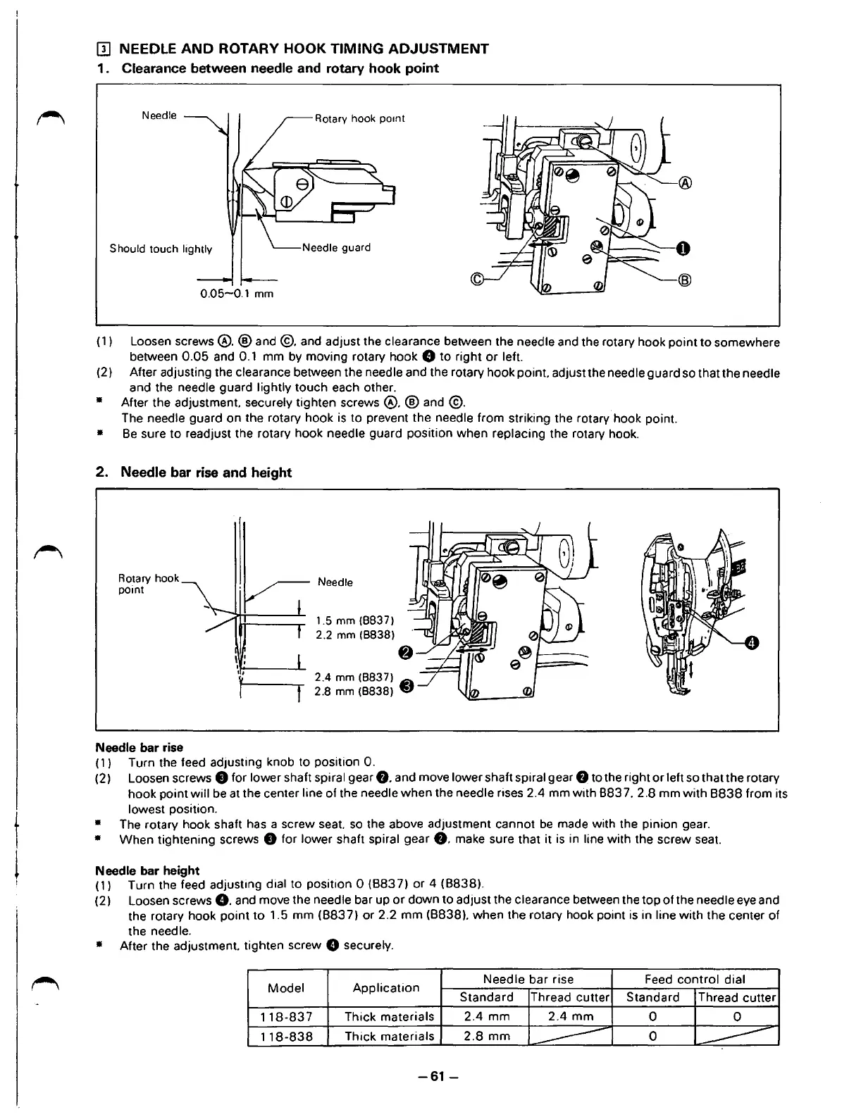 (2) After adjusting the clearance between the needle and the rotary hook point. adjust the needle guard so that the needle