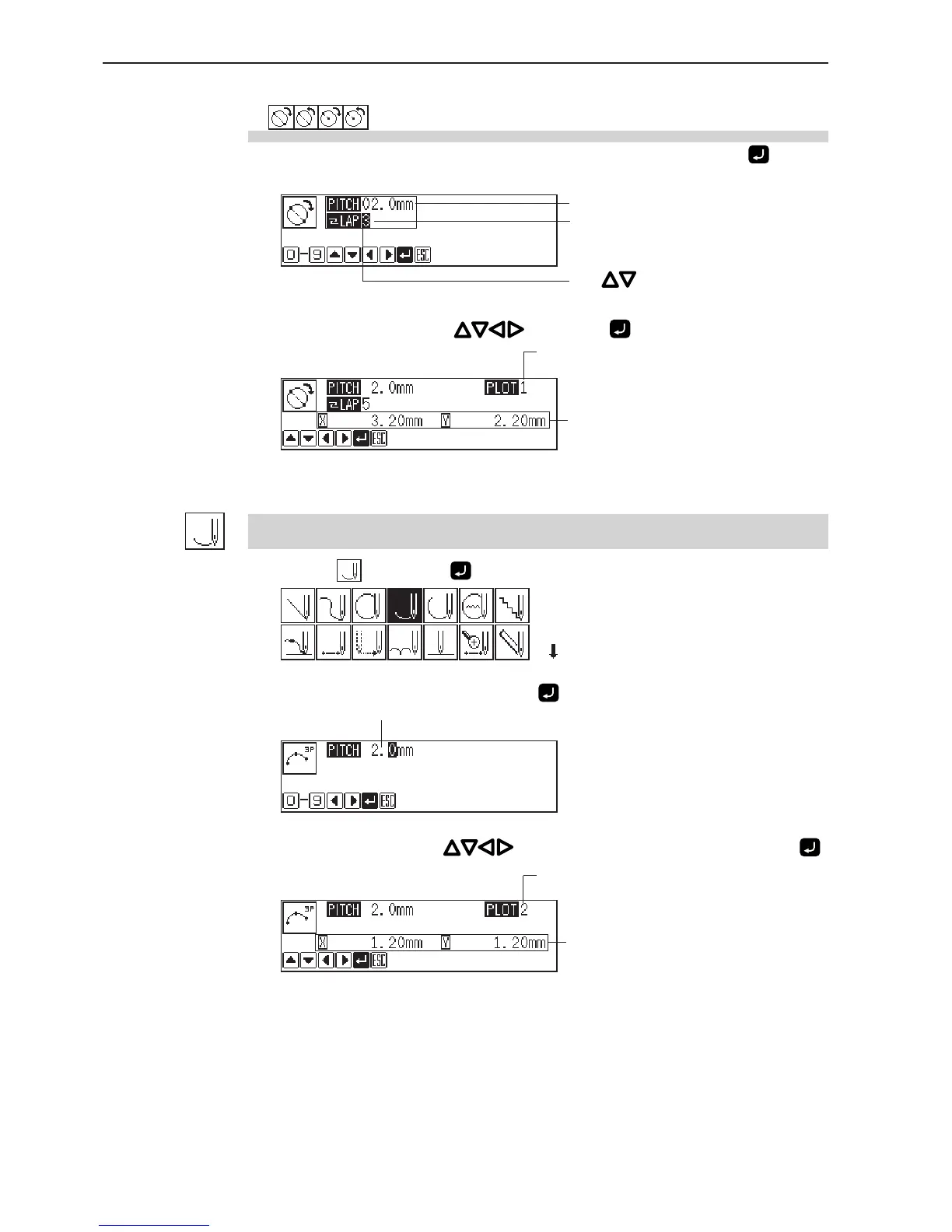 1. Input the stitch length and the overlap stitch count, then press .
