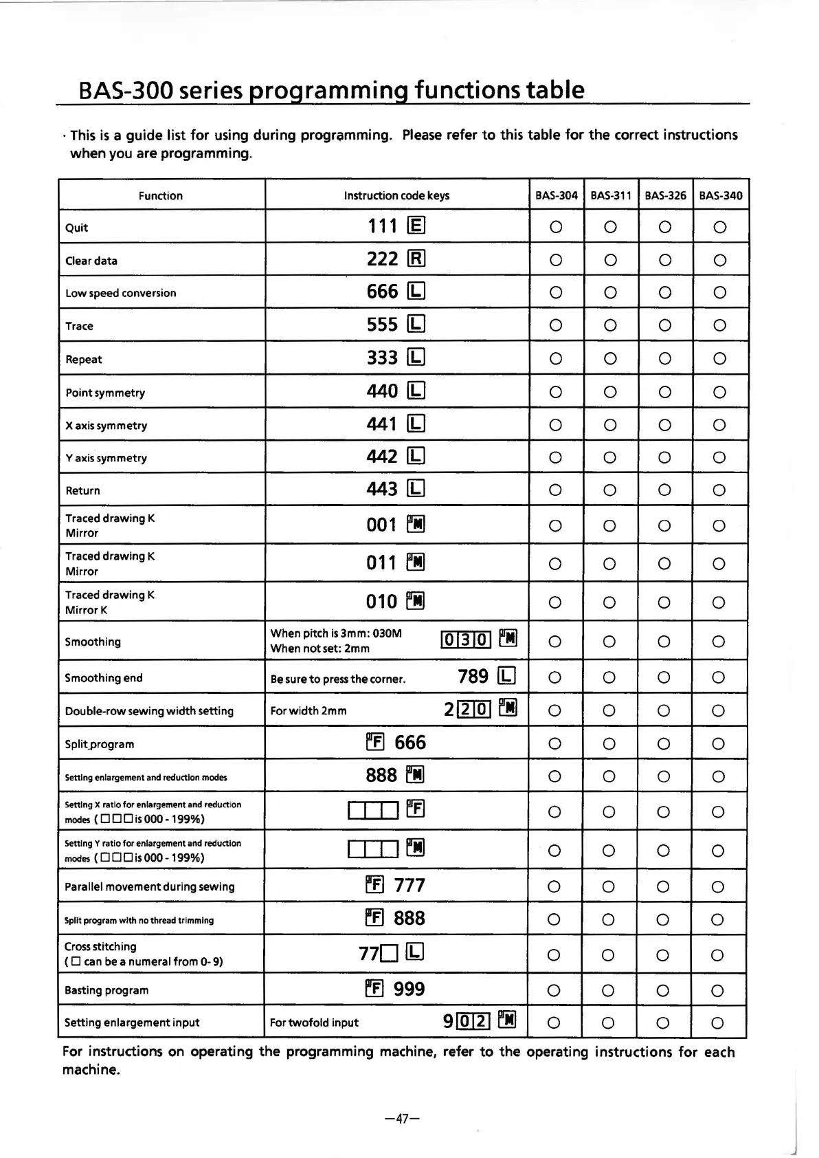 instructions on operating the programming machine, refer