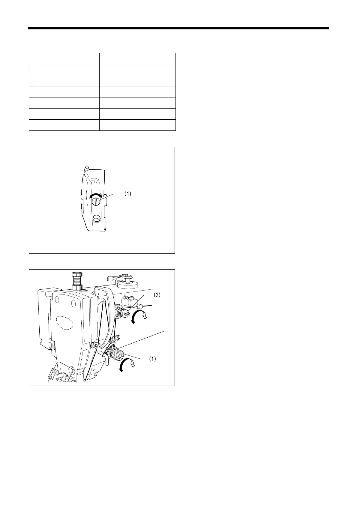 2. Use the tension nut (2) (sub tension) to adjust the upper