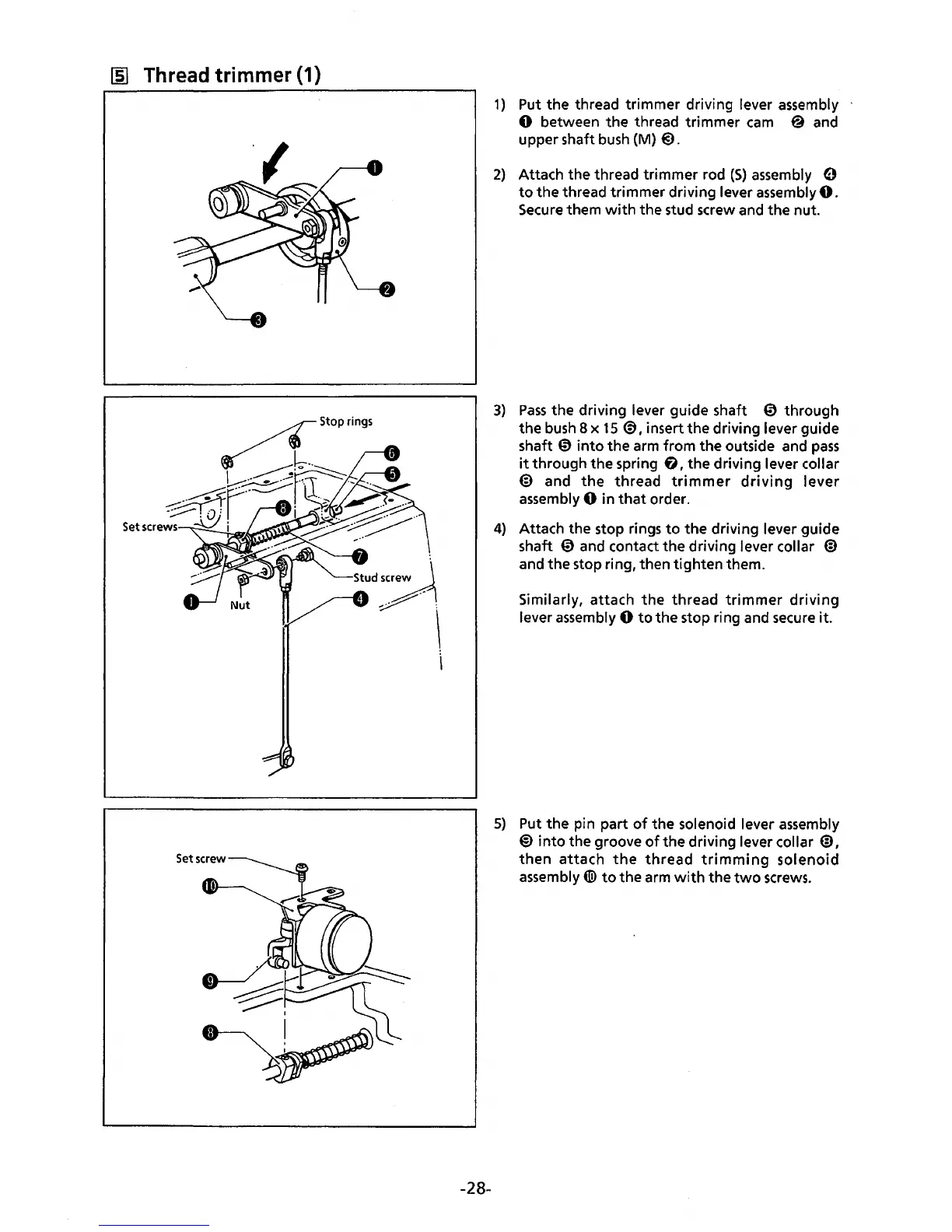 Put the thread trimmer driving lever assembly