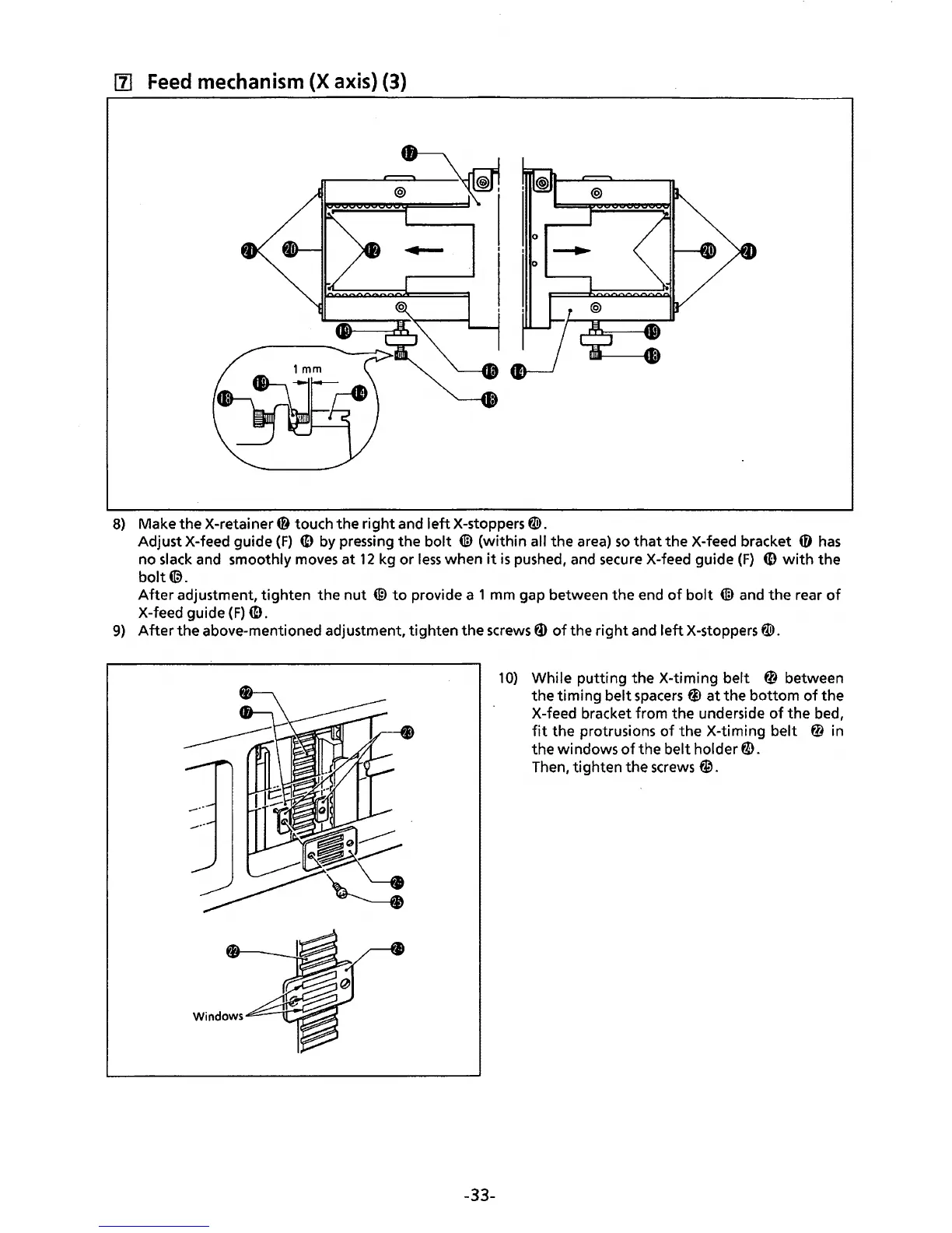 Adjust X-feed guide