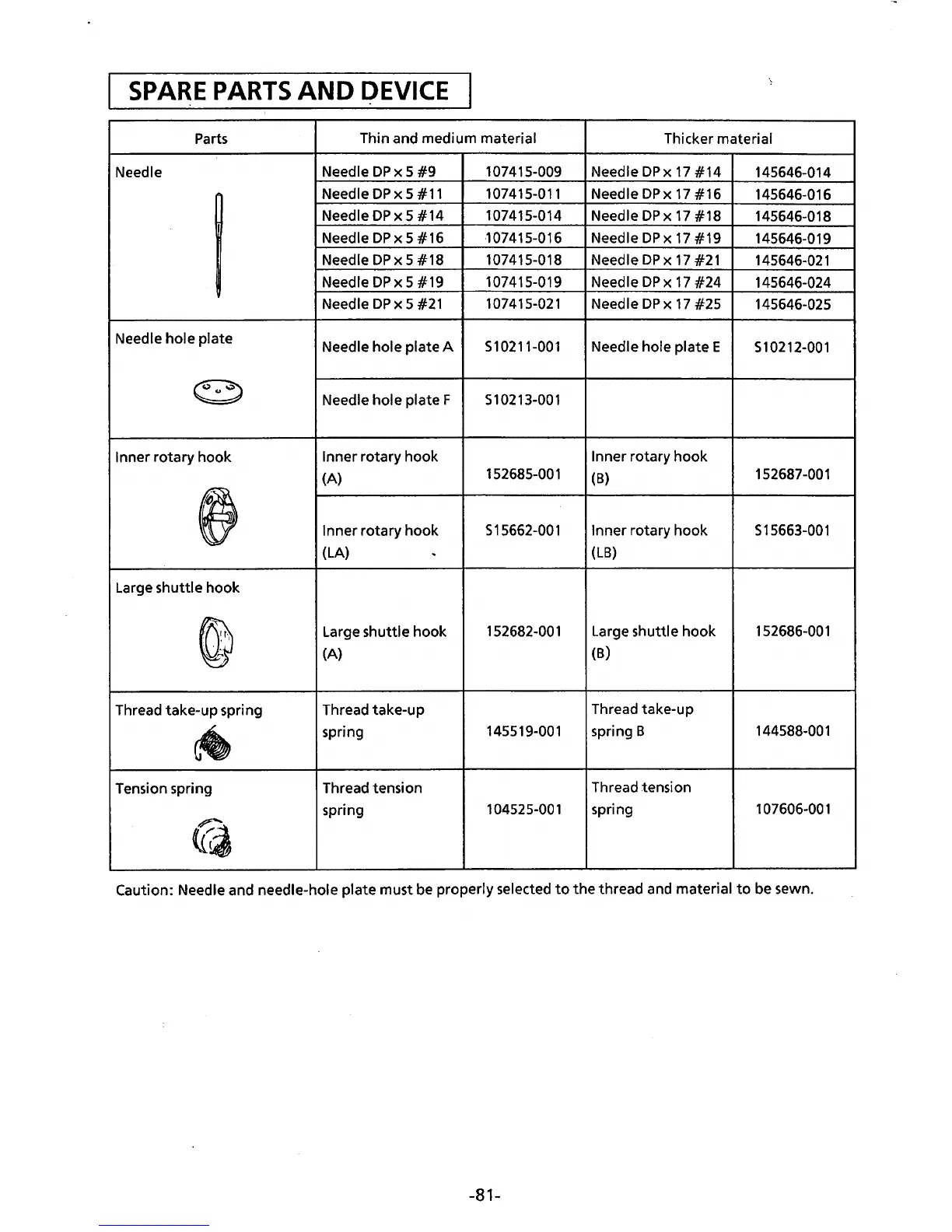Caution: Needle and needle-hole plate must be properly selected