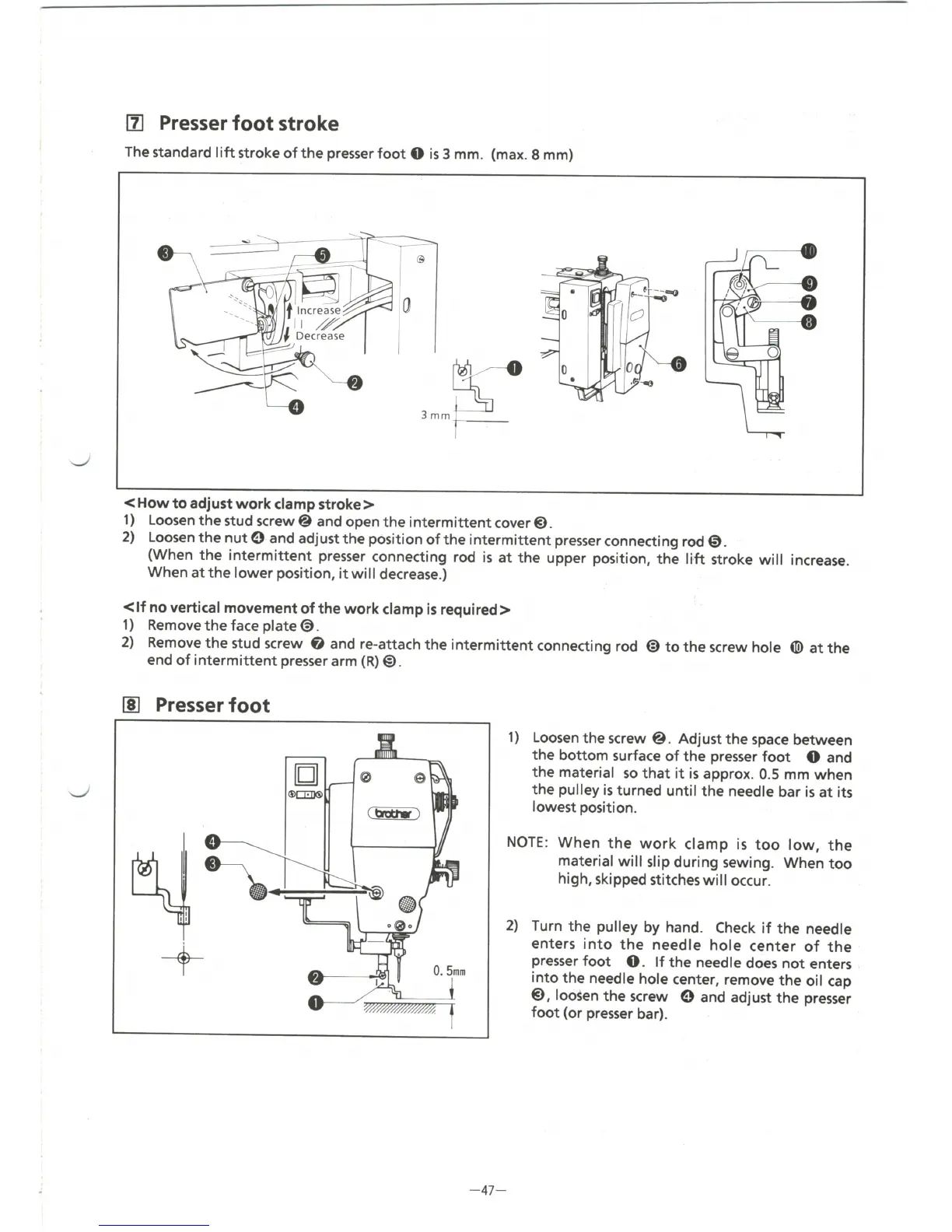 Brother bas 341A - Presser Foot Stroke; Presser Foot; How to Adjust Work Clamp Stroke; If no Vertical Movement of the Work Clamp Is Required