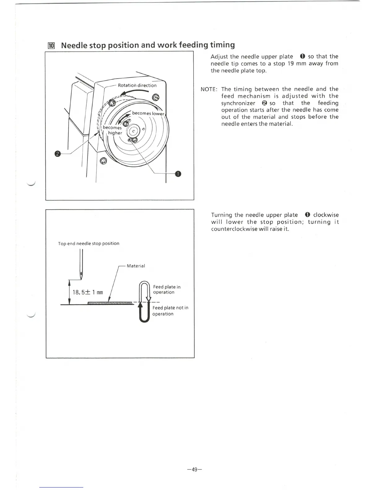 Brother bas 341A - Needle Stop Position and Work Feeding Timing
