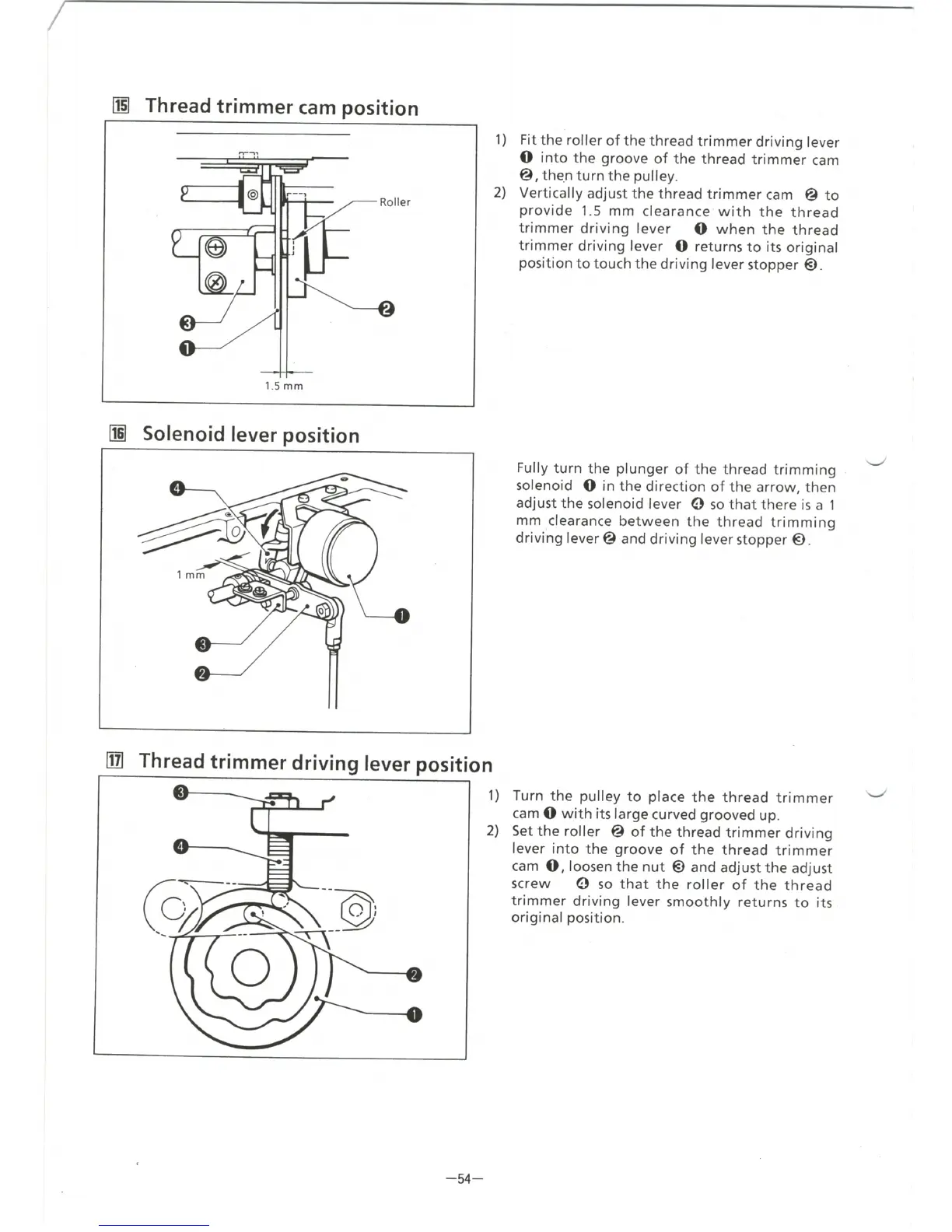 Brother bas 341A - Thread Trimmer Cam Position; Solenoid Lever Position; Thread Trimmer Driving Lever Position