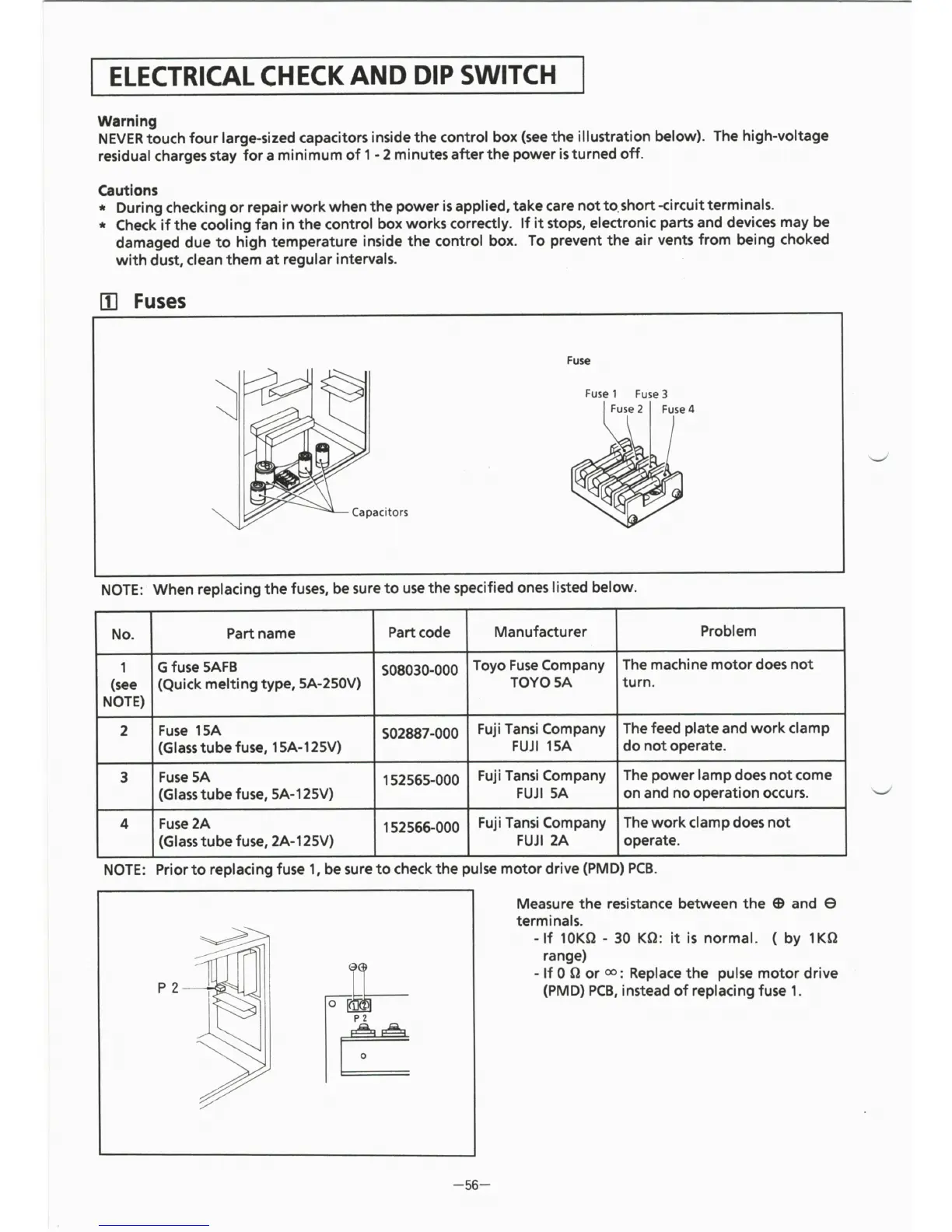 Brother bas 341A - Electrical Check and Dip Switch; Fuses