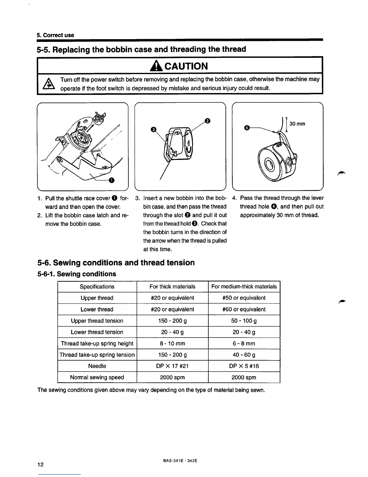 5-6. Sewing conditions and thread tension