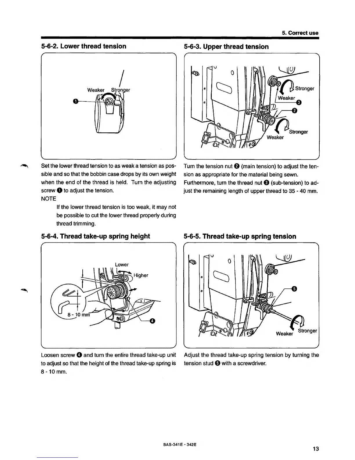 5-6-4. Thread take-up spring height 5-6-5. Thread take-up spring tension