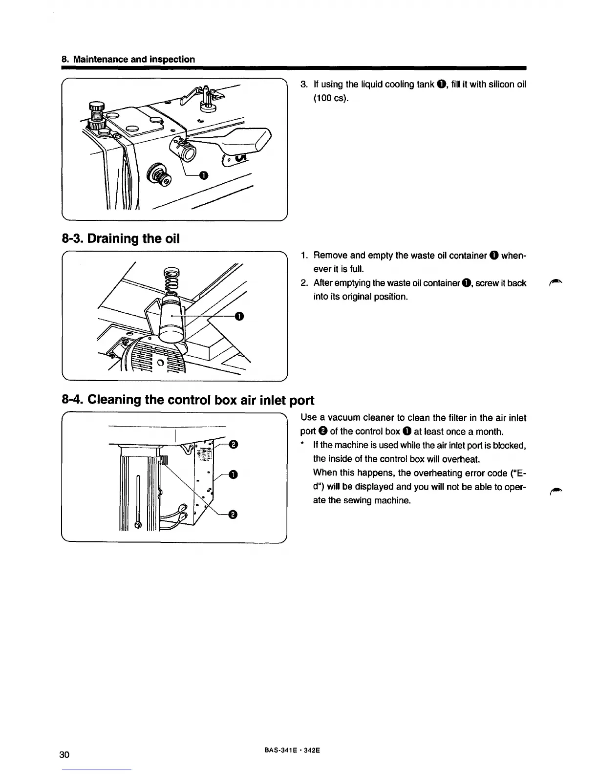 Brother BAS-341E - Draining the Oil; Cleaning the Control Box Air Inlet Port