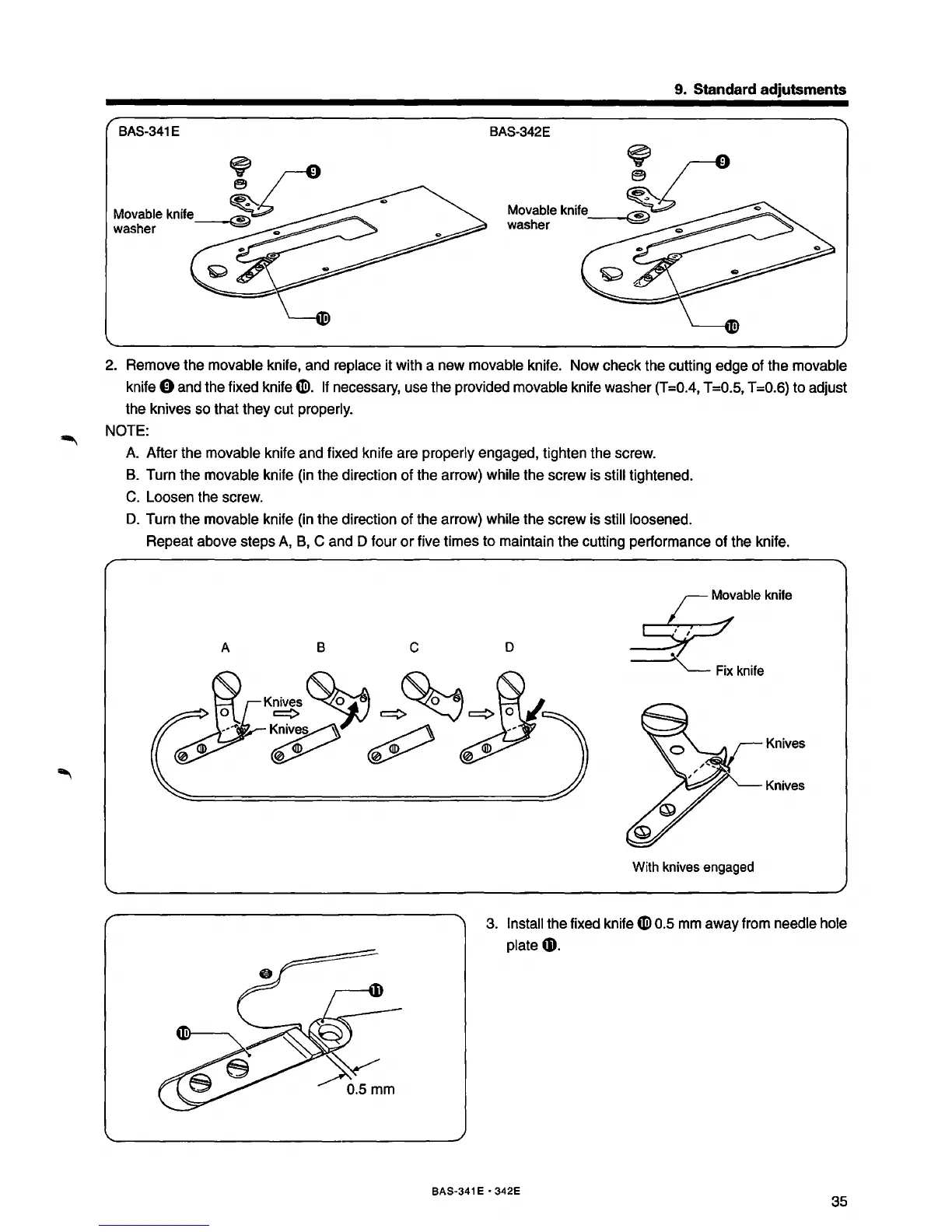 If necessary, use the provided movable knife washer (T =0.4, T =0.5, T =0.6) to adjust