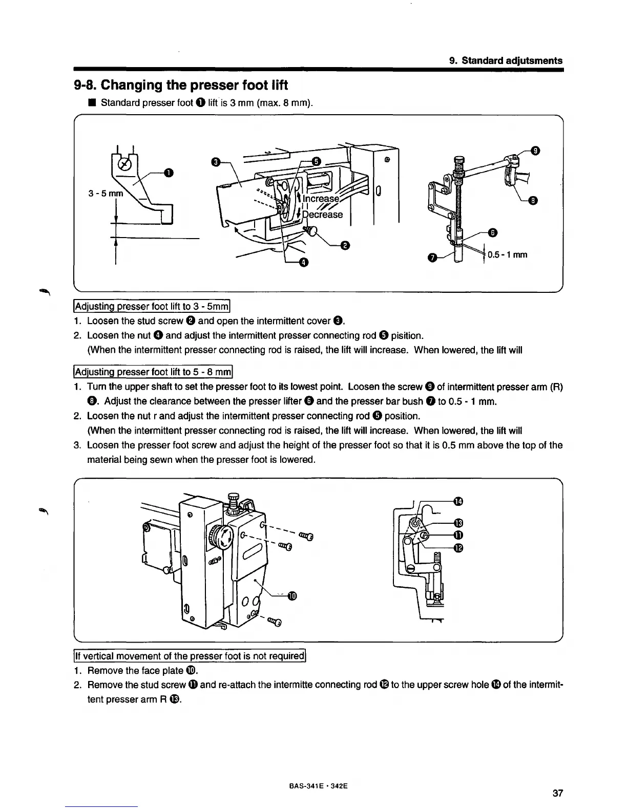 Adjust the clearance between the presser lifter 0 and the presser bar bush 8 to