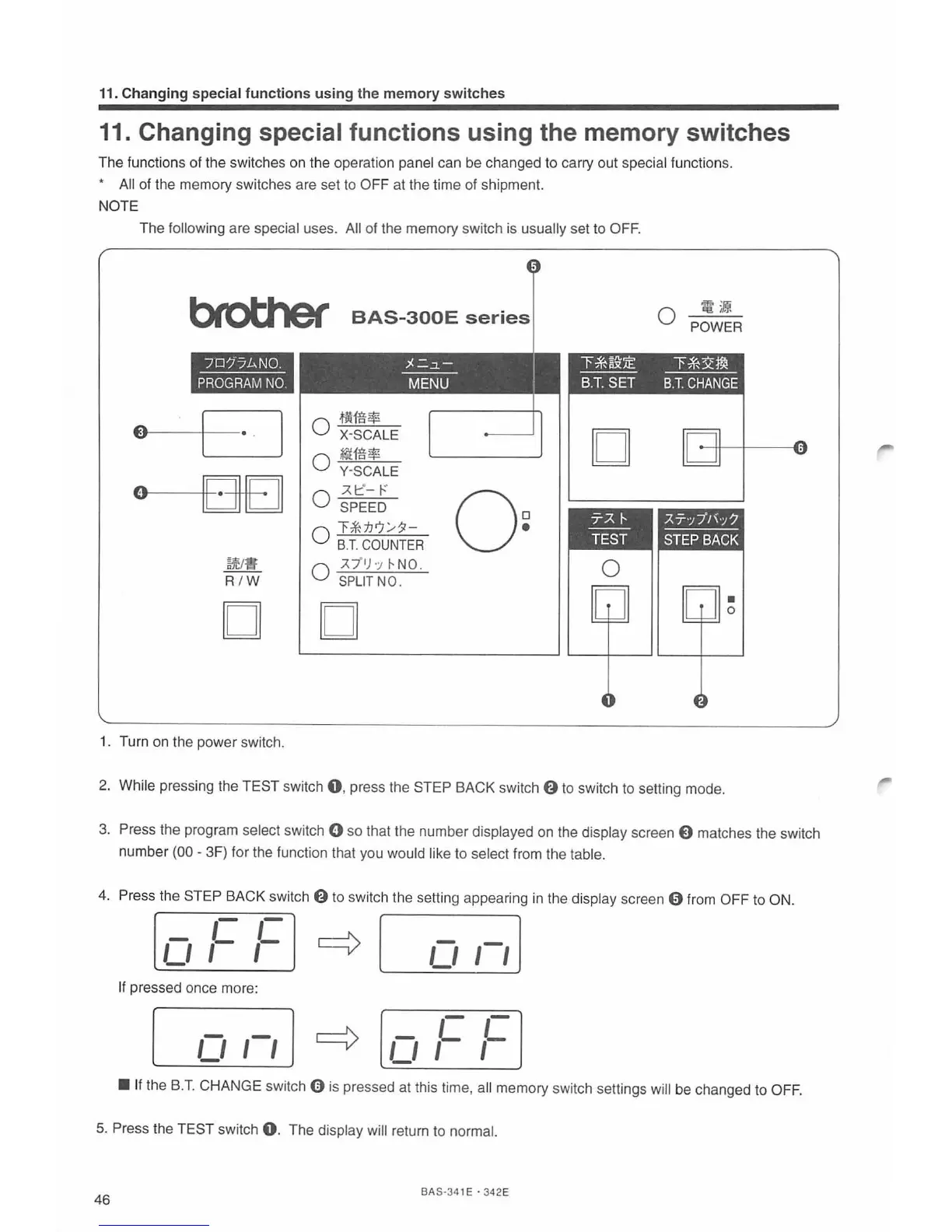 CHANGE switch 0 is pressed at this time, all memory switch settings will be changed to OFF.