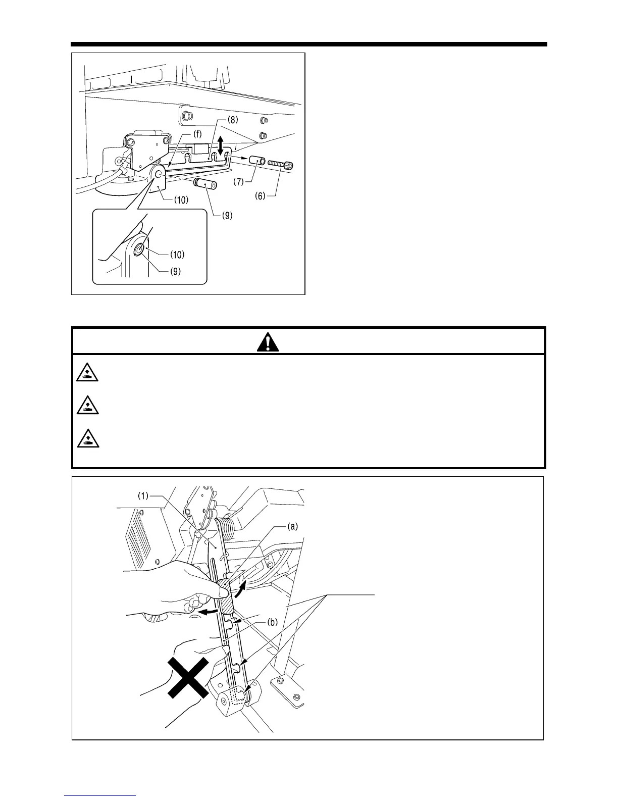 If the stopper is not engaged, the machine head may return to its original position and your hands may get caught and