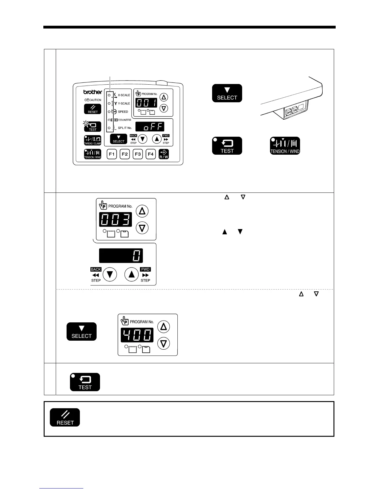 With the power turned on, press the TEST key and the