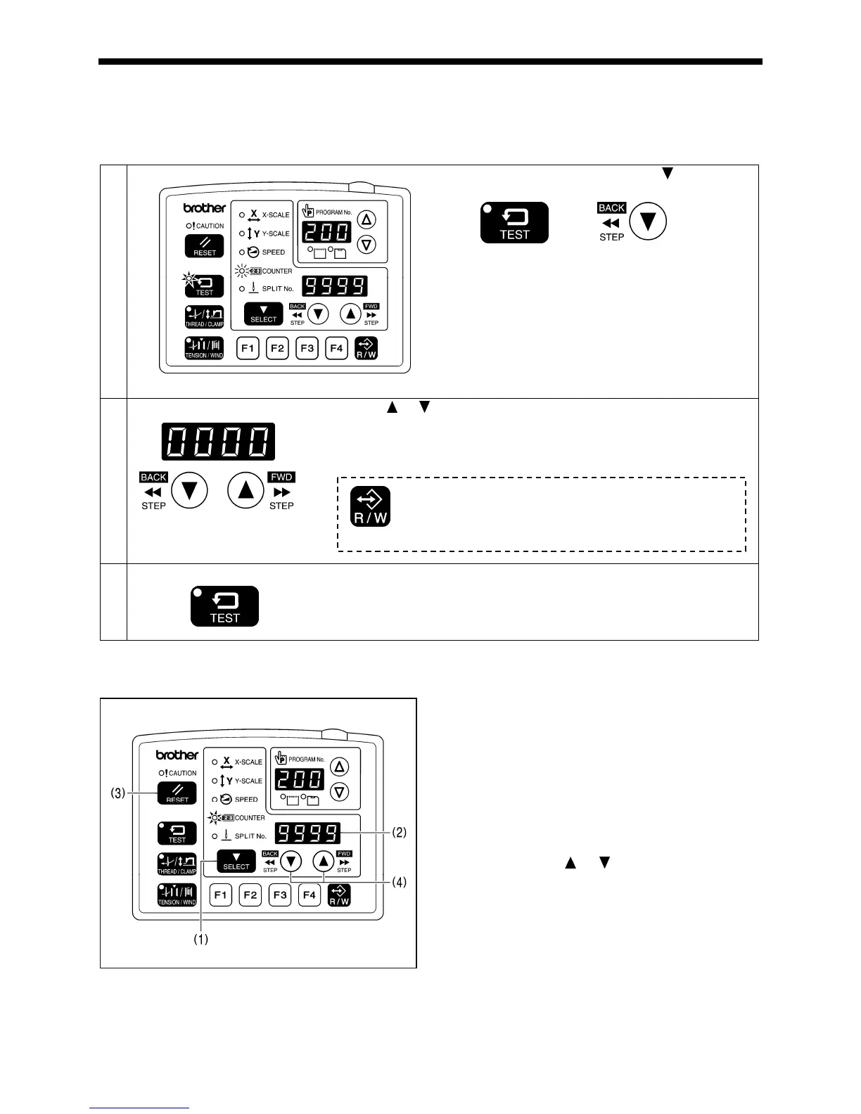 COUNTER indicator will illuminate and the lower thread counter will appear in the menu display (2).