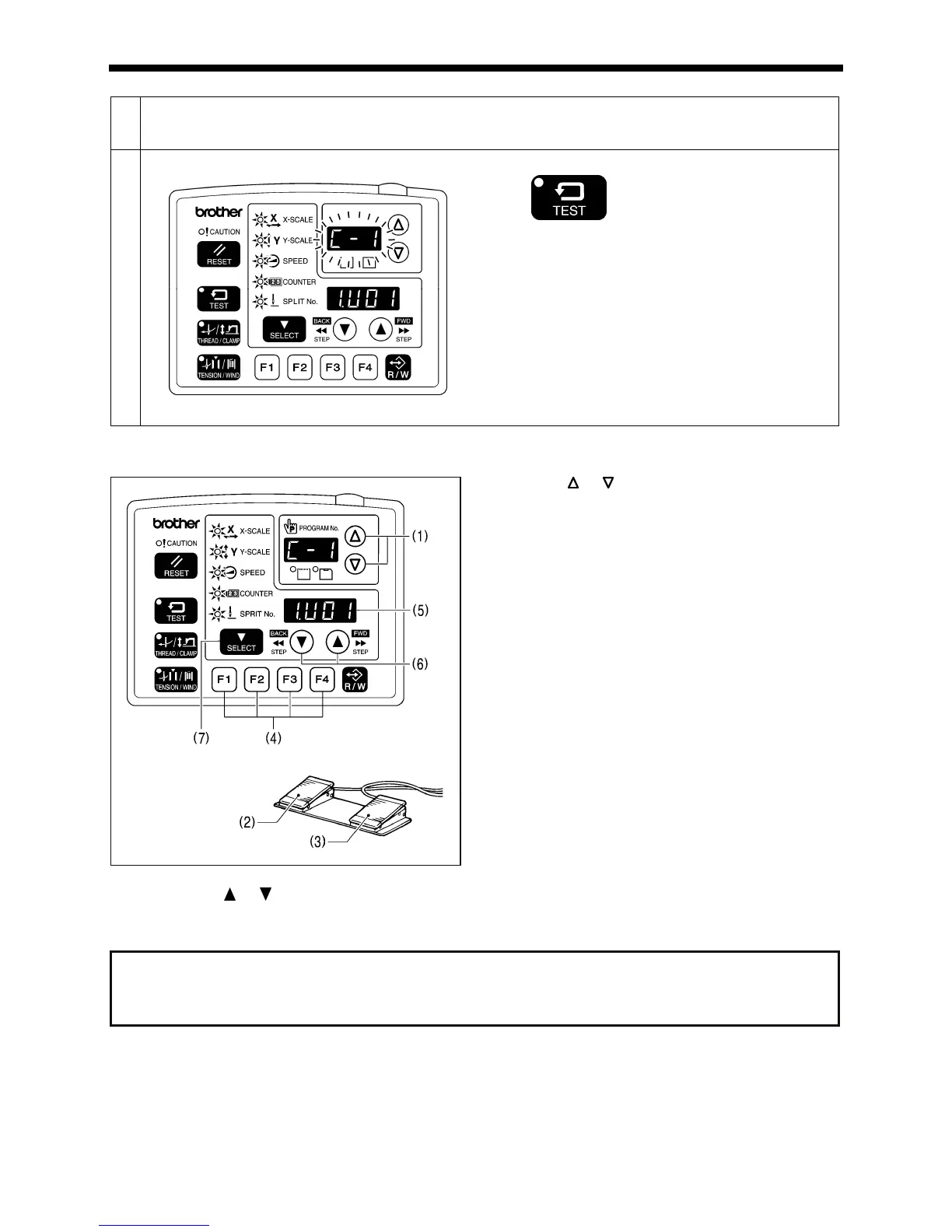 • If you press the SELECT key (7), you can check the details (such as X-scale, Y-scale and sewing speed) of the user