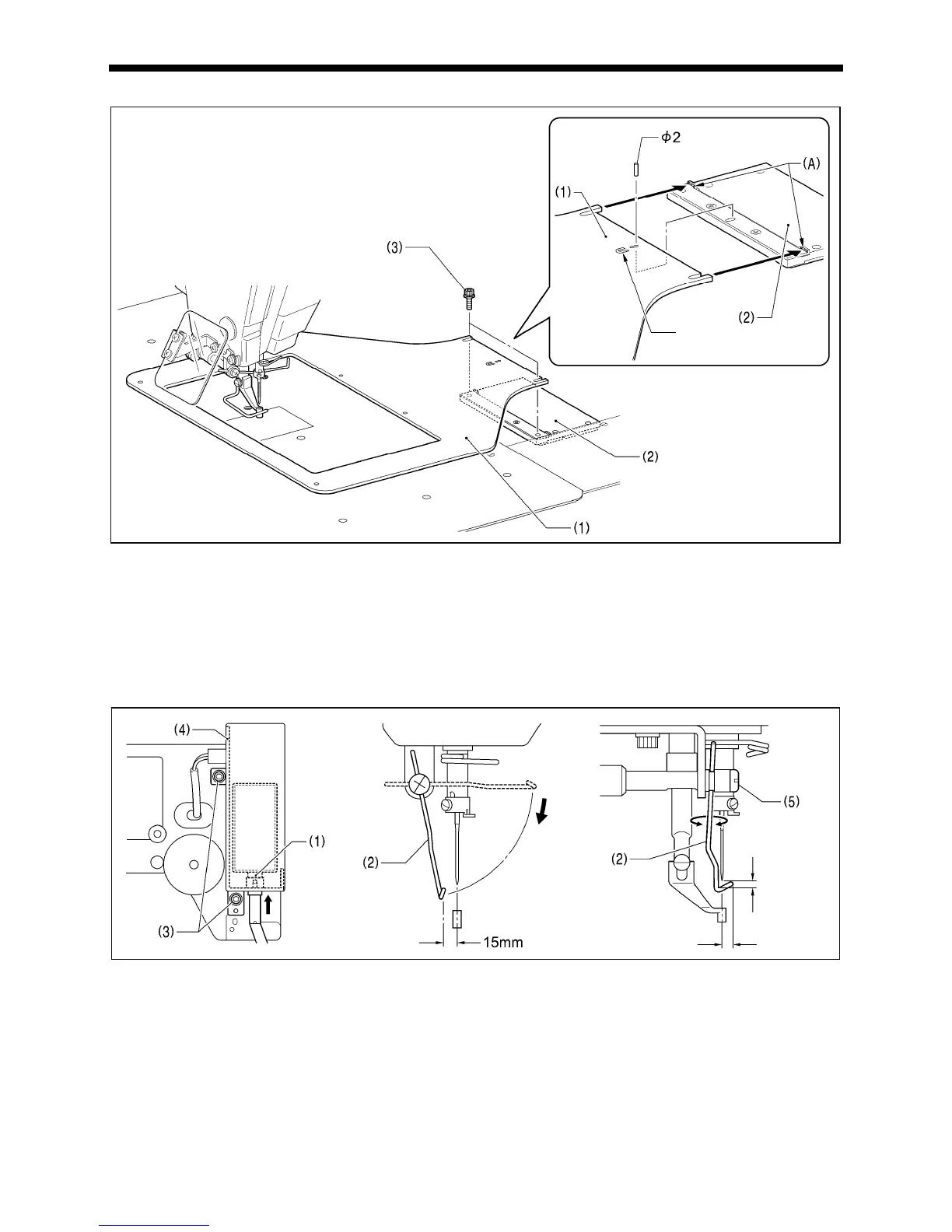 the needle is approximately 2 mm and the tip of the thread wiper (2) is approximately 3 mm from the center of the needle