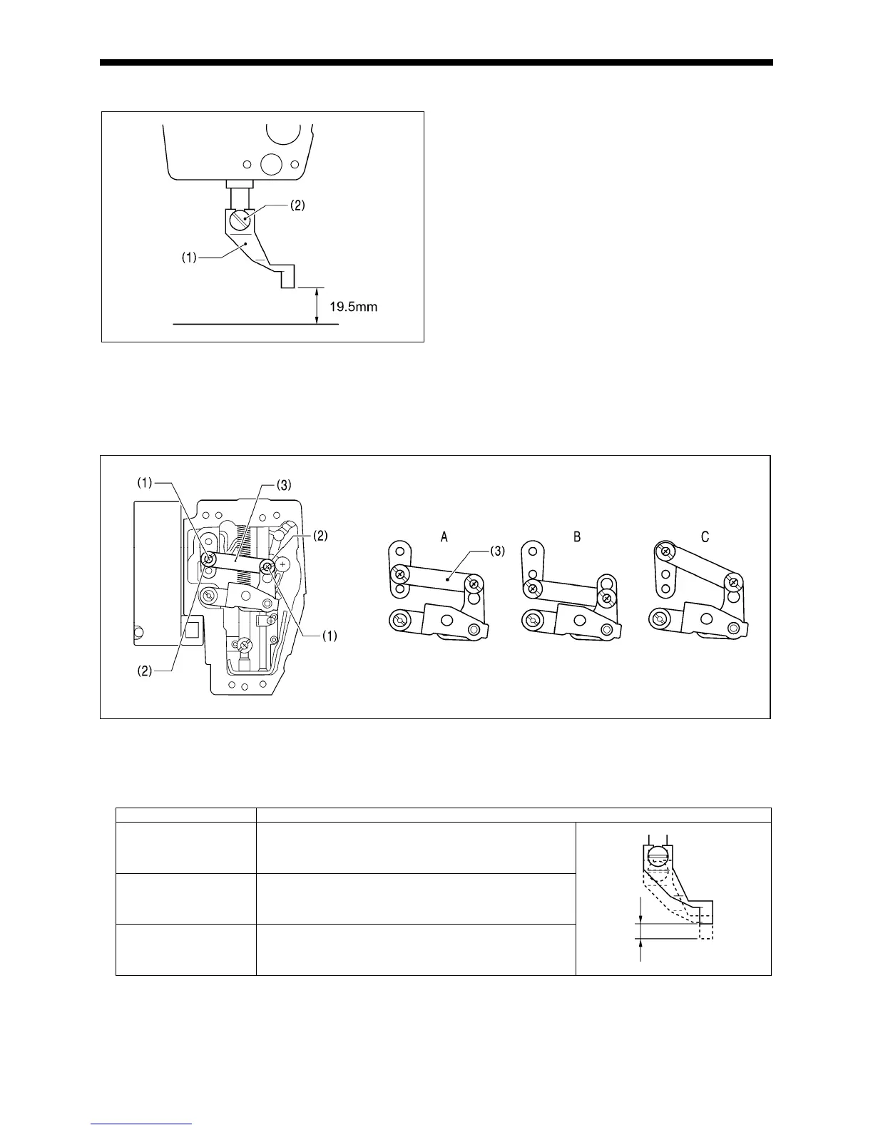 3. Change the installation position for stepping clamp link A (3) to either A, B or C above.