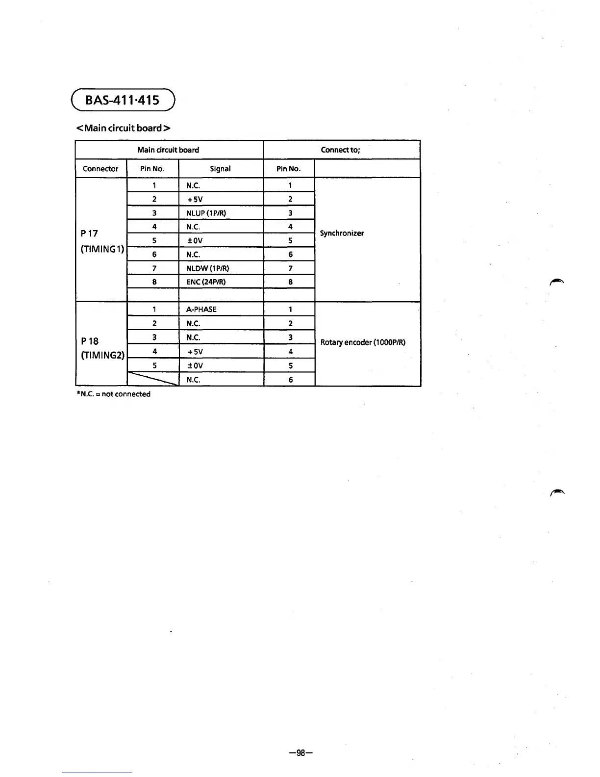 *N.C.= not connected