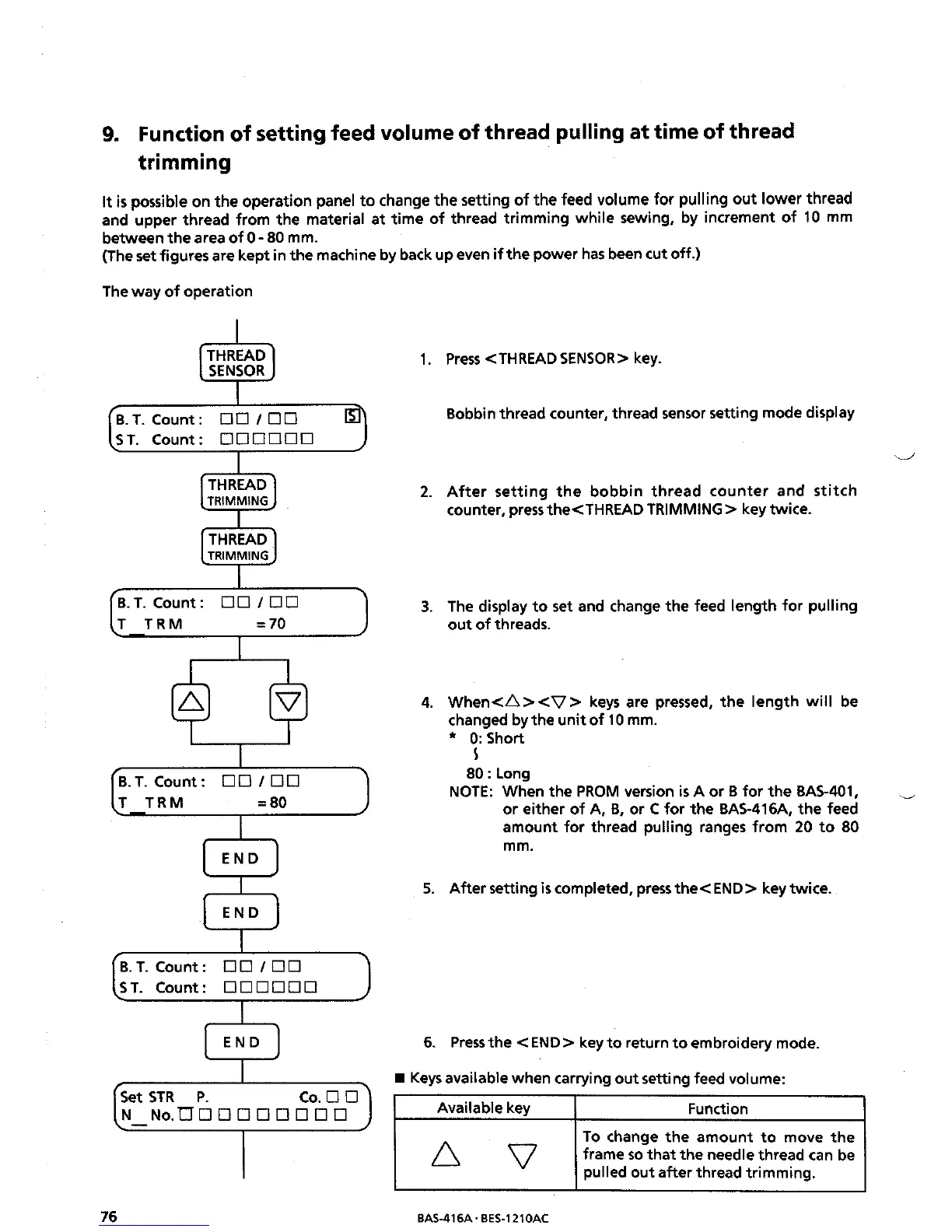 Brother BAS-416A - Function of Setting Feed Volume of Thread Pulling at Time of Thread Trimming