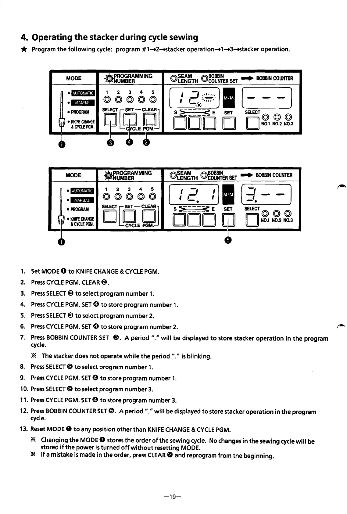 stacker during cycle sewing