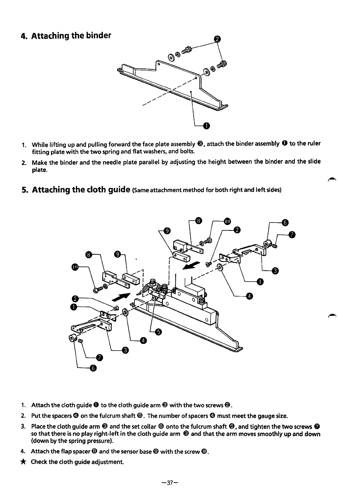 Brother BAS-600 - Attaching the Binder; Attaching the Cloth Guide; (Same Attachment Method for both Right and Left Sides)