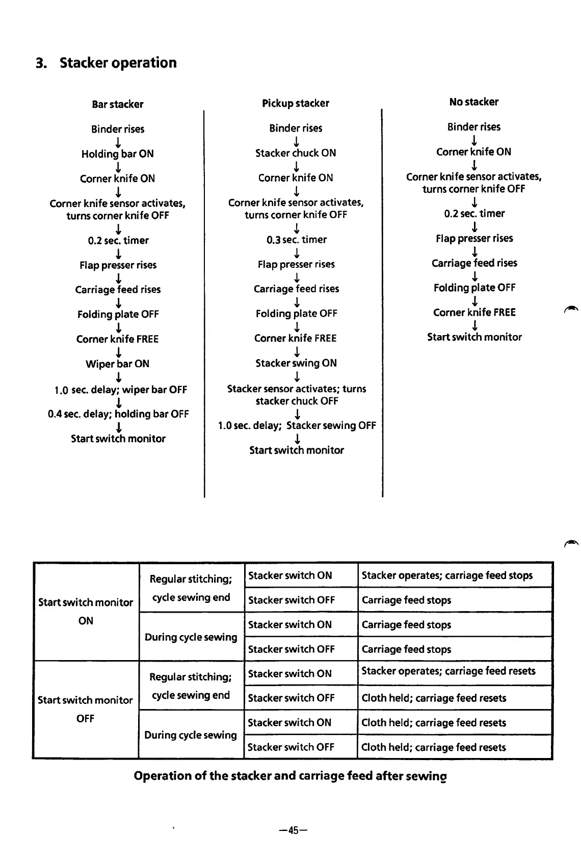 delay; Stacker sewing