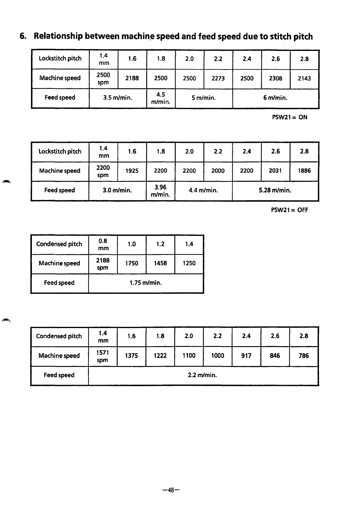 Brother BAS-600 - Relationship between Machine Speed and Feed Speed Due to Stitch Pitch