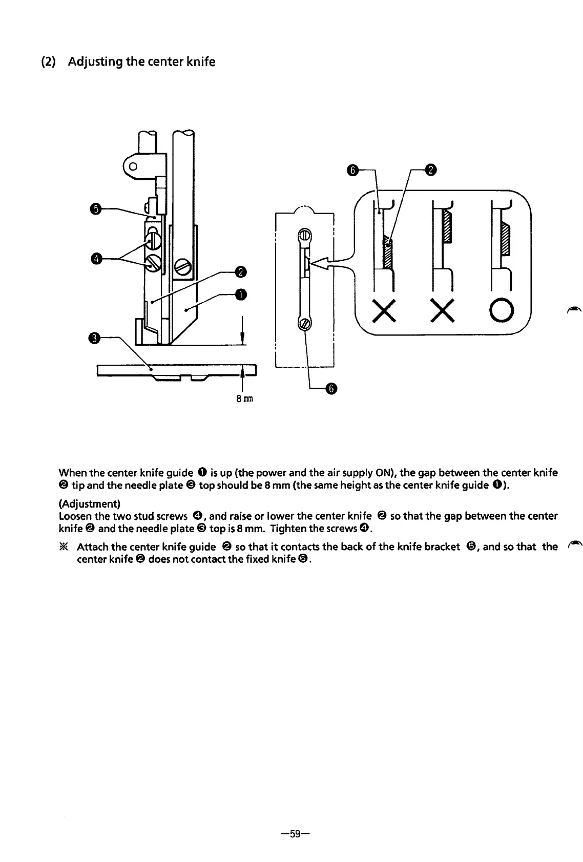 Adjusting the center knife