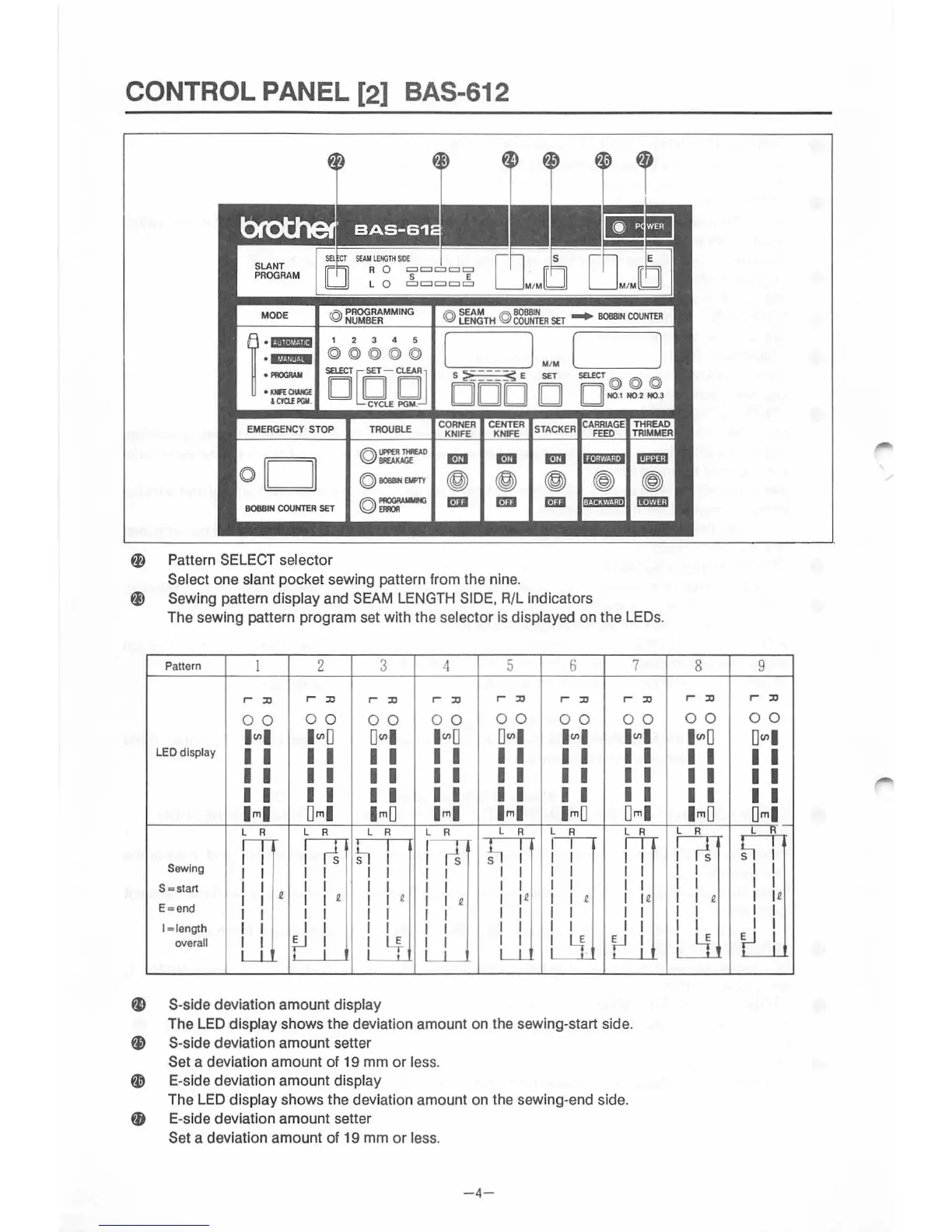 The LED display shows the deviation amount on the sewing-start side.