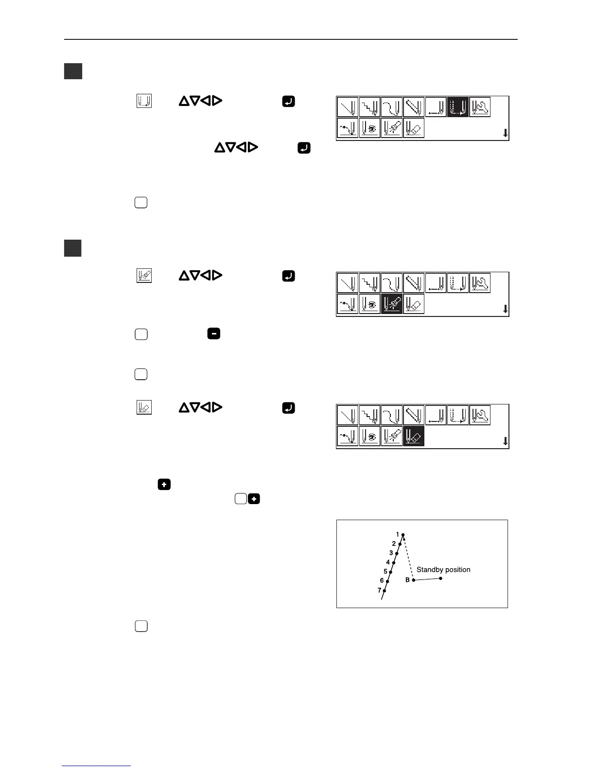 The example is deleting 1 stitch. Press