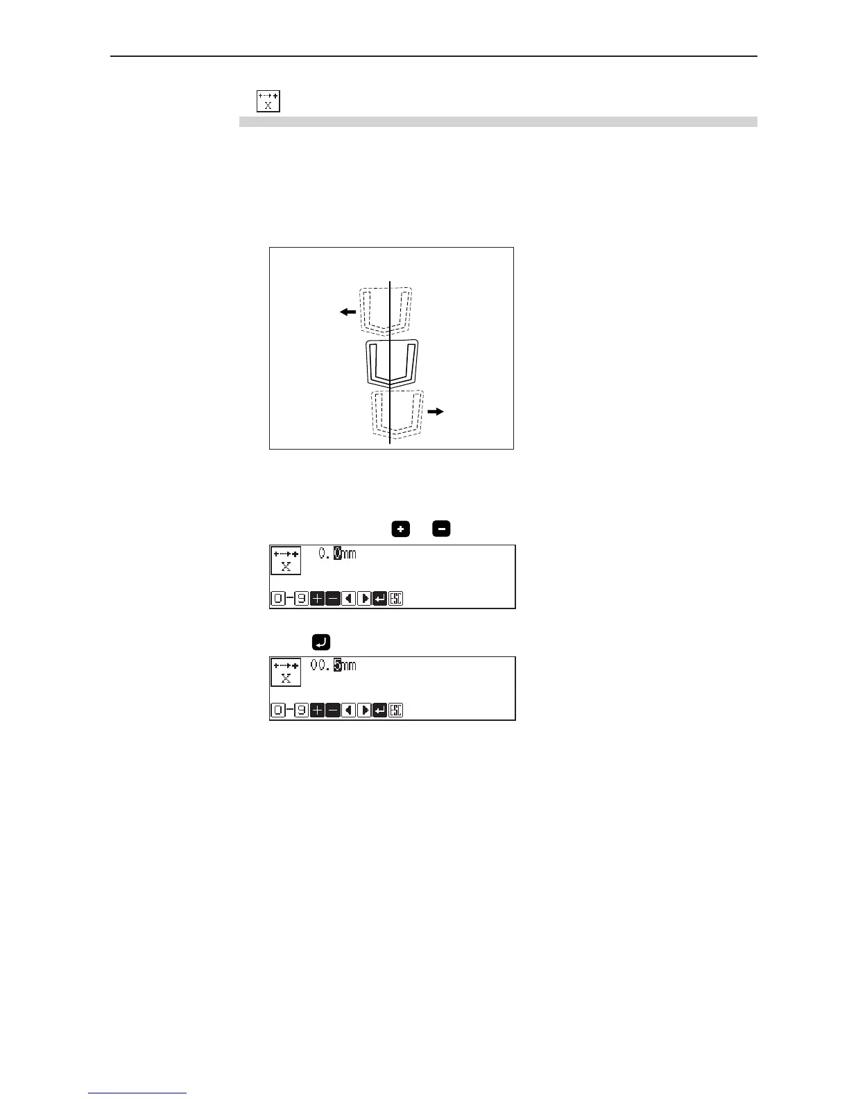 by the X origin sensor as 0. Values -2.0 and 5.0 mm are available for the position. The