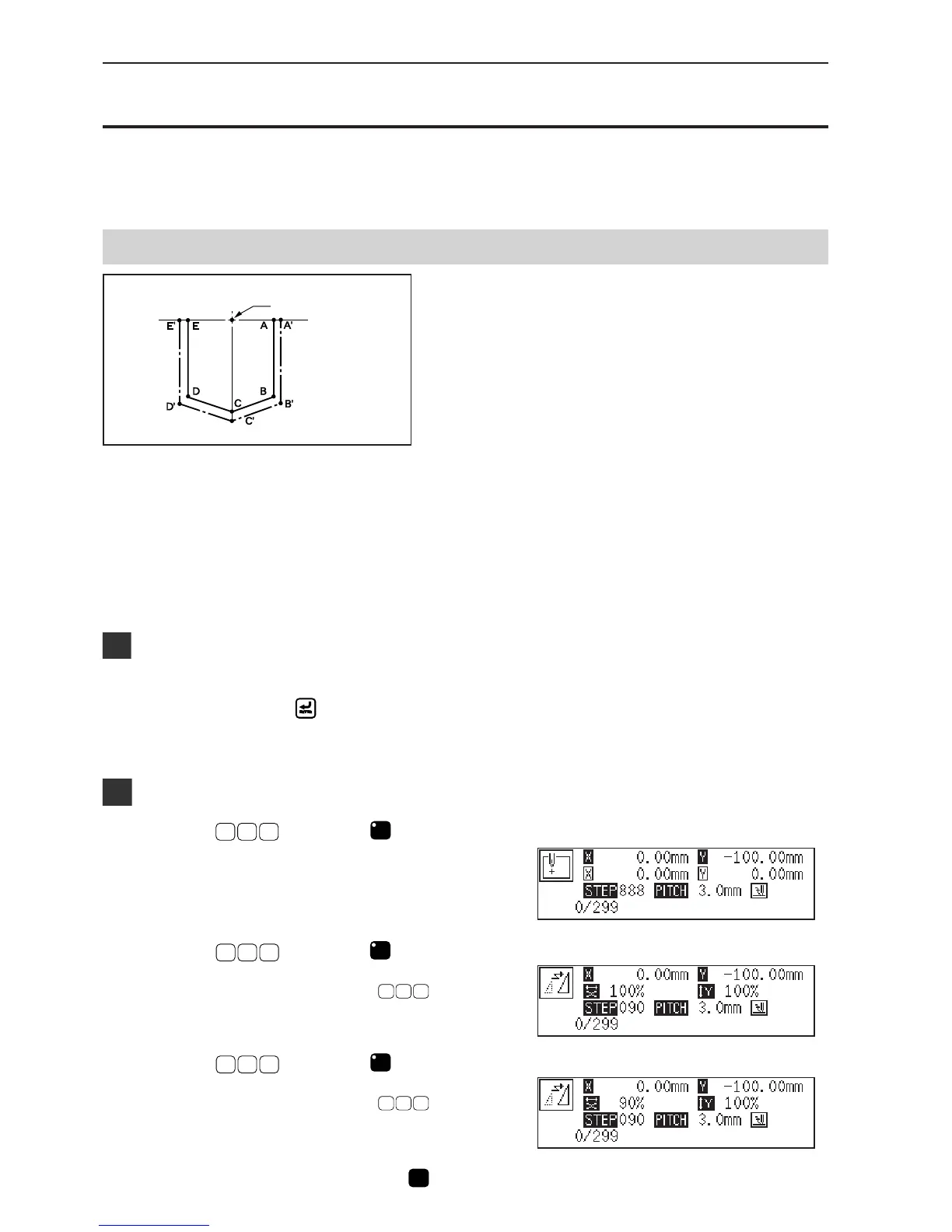 The programmed pattern is resized. The example in the