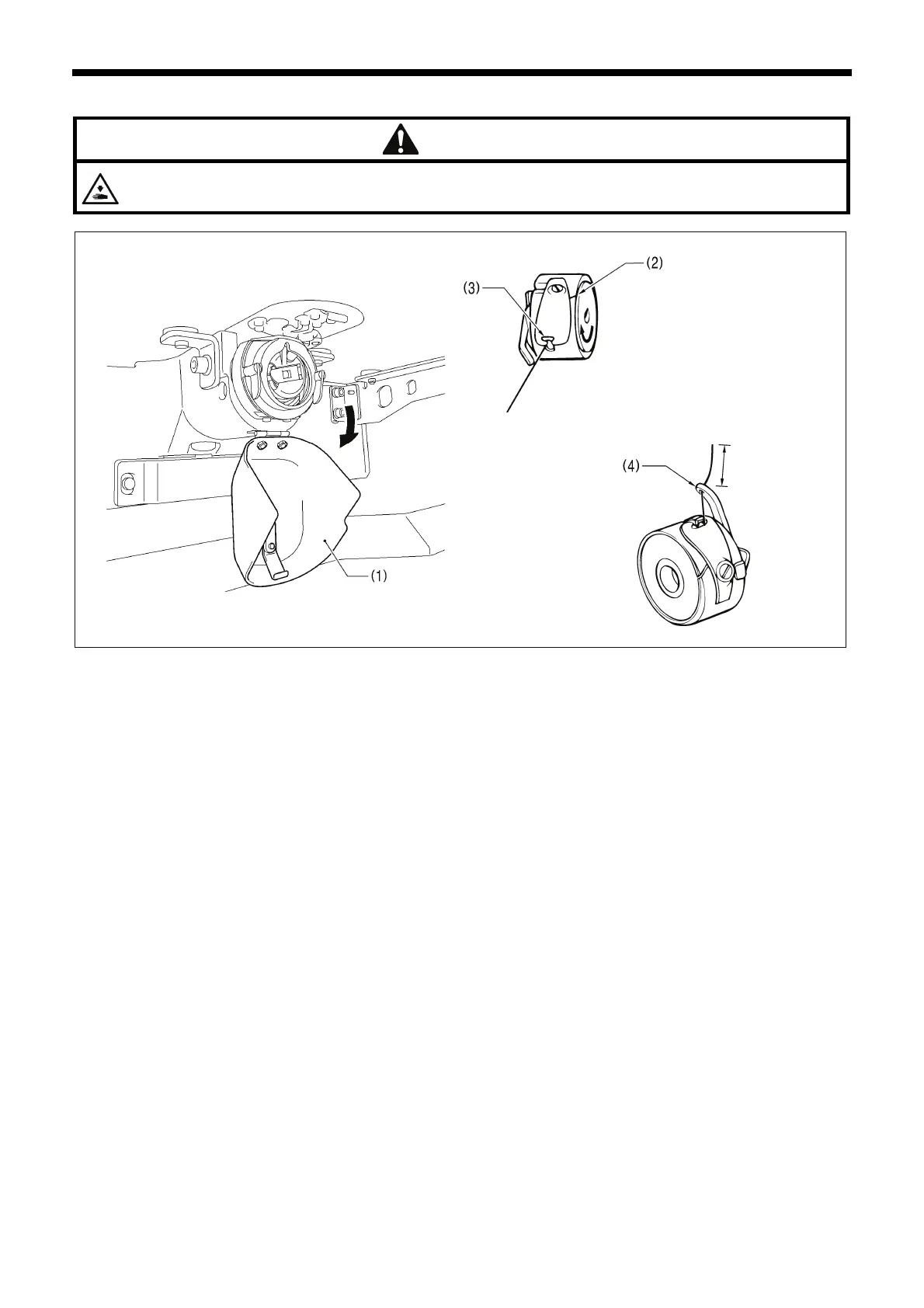 1. Pull the shuttle race cover (1) downward to open it.