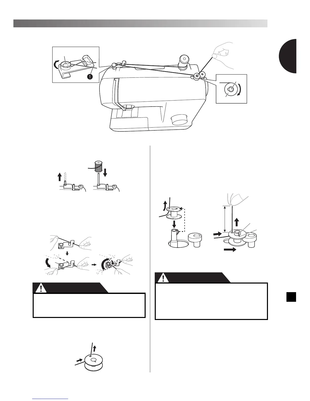 1 Pre-tension disk 2 Bobbin winder shaft 3 Bobbin