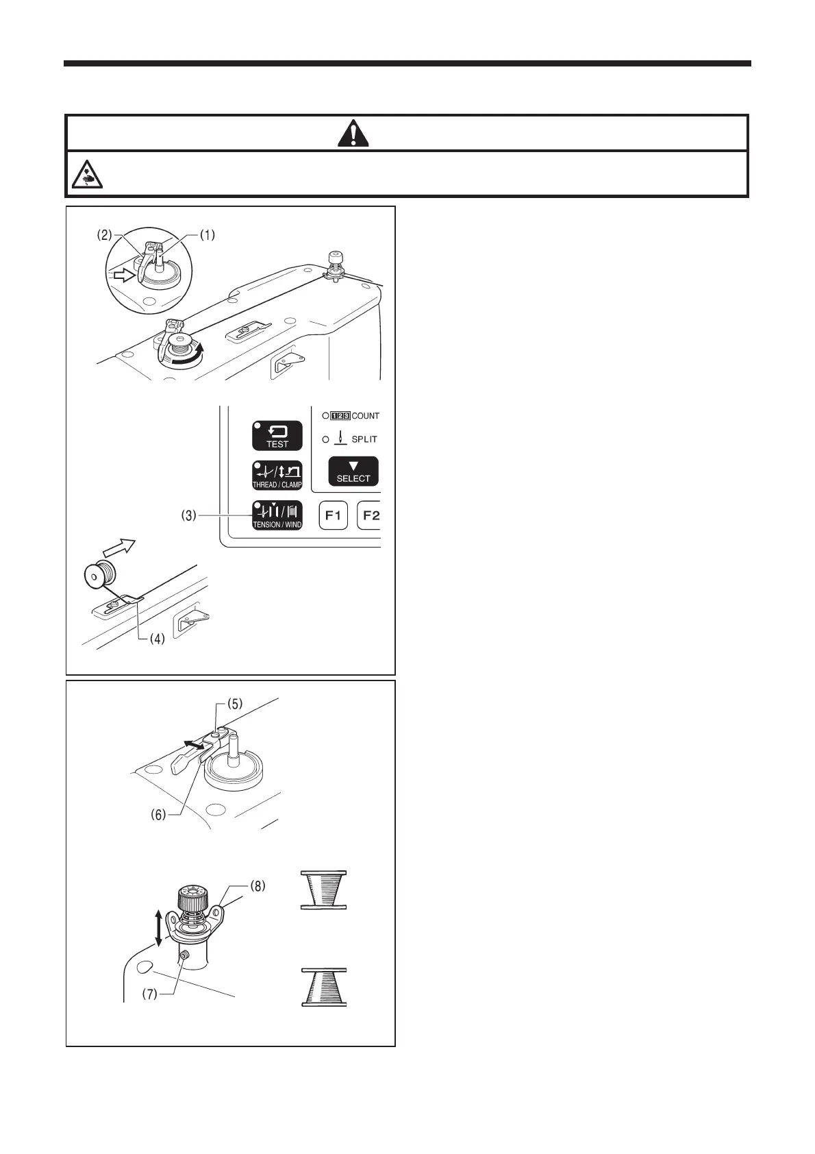 then while pressing the TENSION WIND key (3), depress