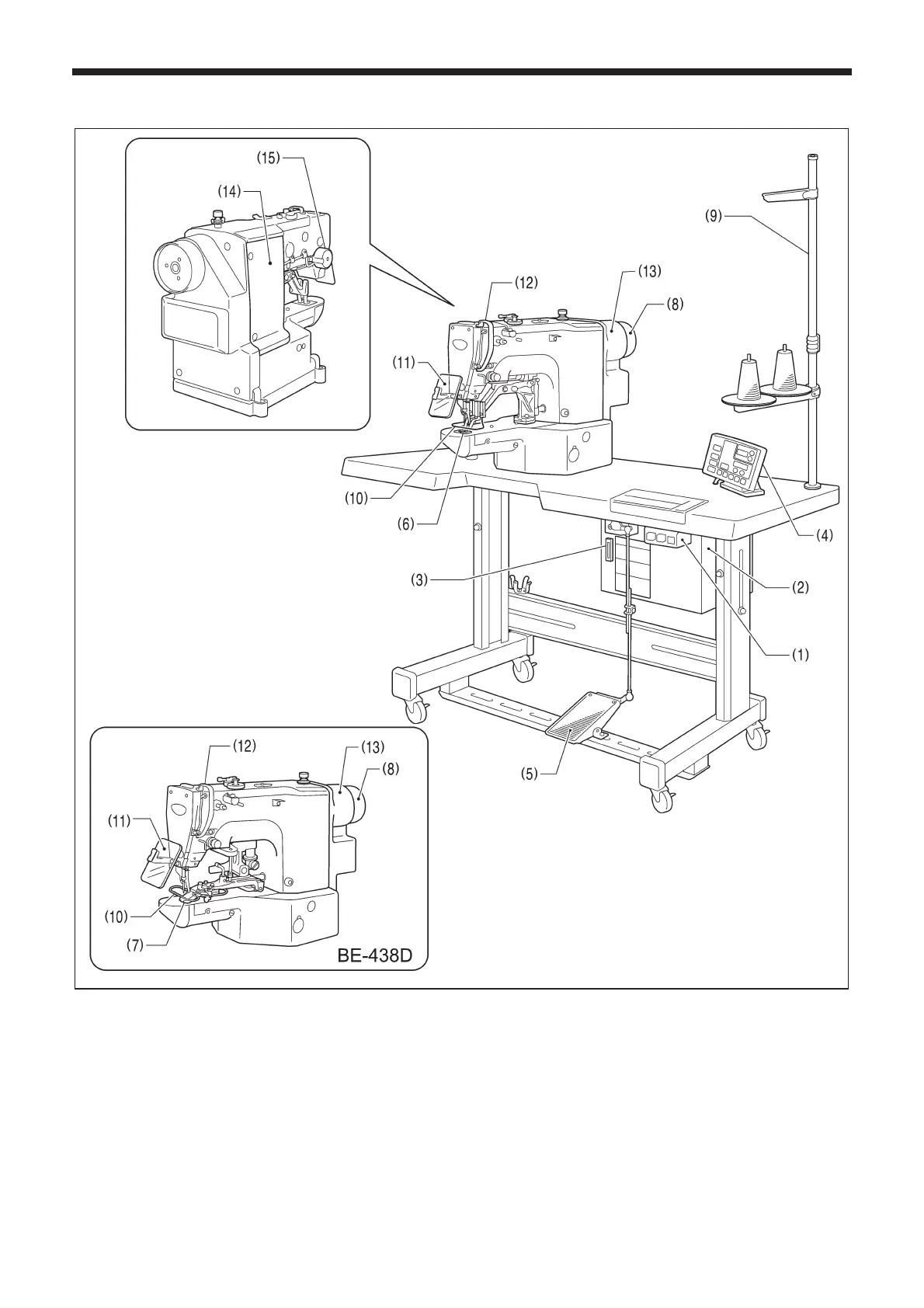 (5) Foot switch (13) Back cover