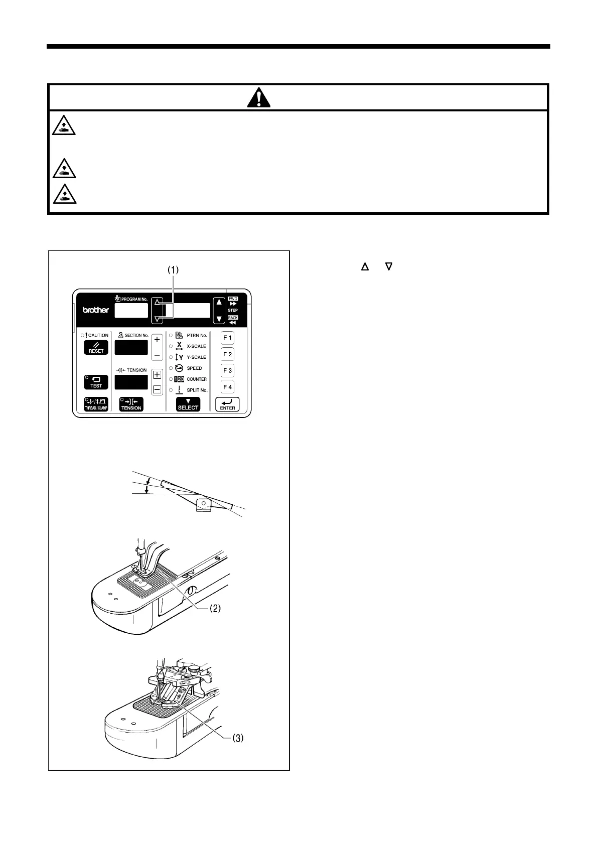 Do not touch any of the moving parts or press any objects against the machine while sewing, as this may result in