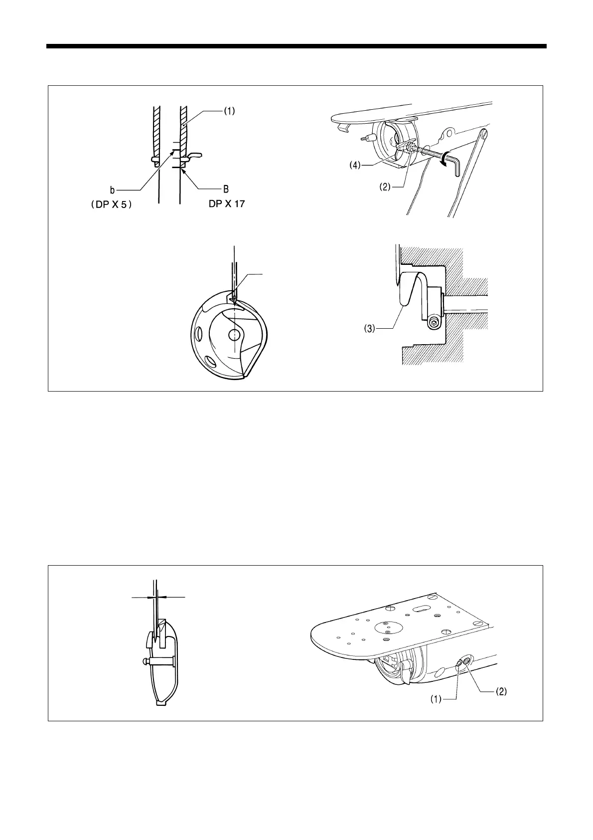 (1) is not touching the needle, the tip of the inner rotary hook will obstruct the needle, resulting in an excessively high