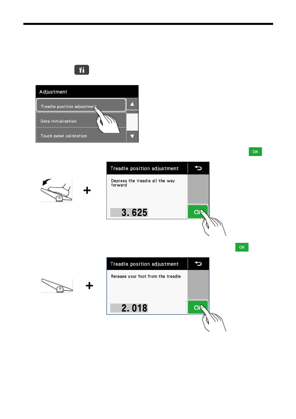 2. Touch "Treadle adjustment".