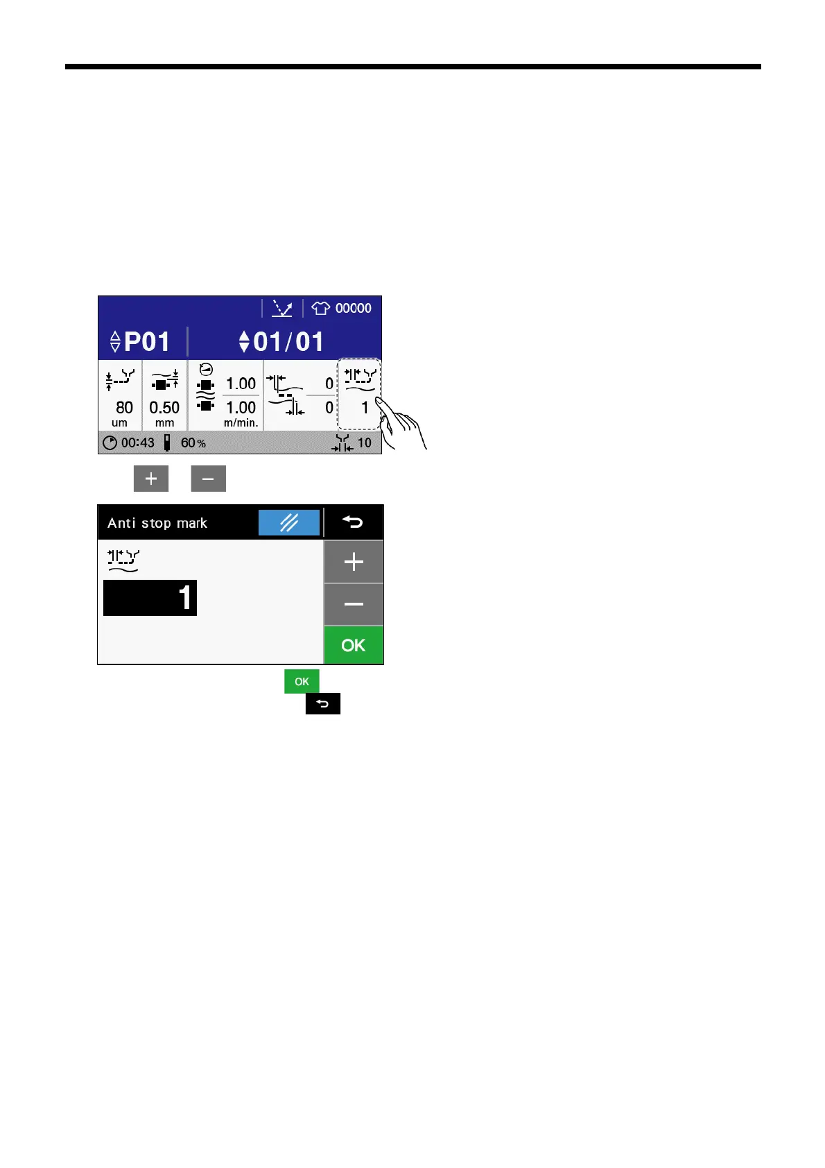 2. Touch or to change the parameter.The more stretchable the cloth is, the higher the value you should set.