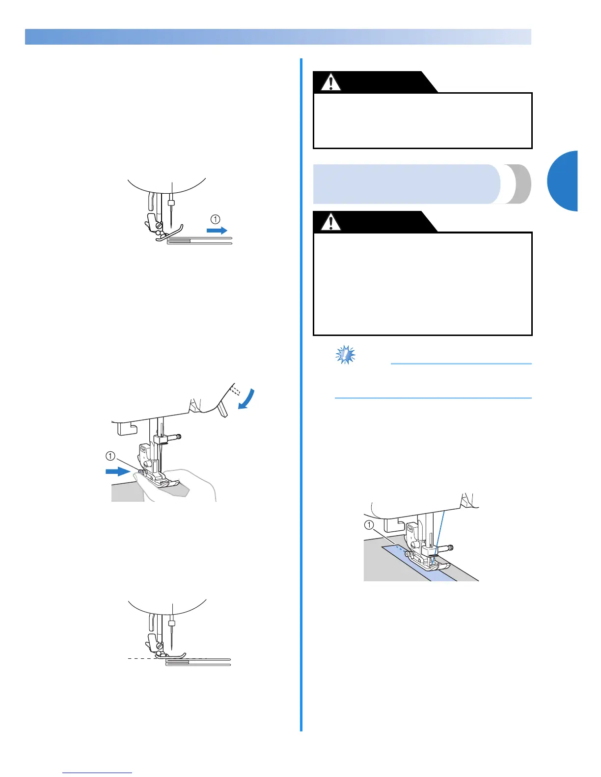 • Una vez cosida la costura, el pie prensatela