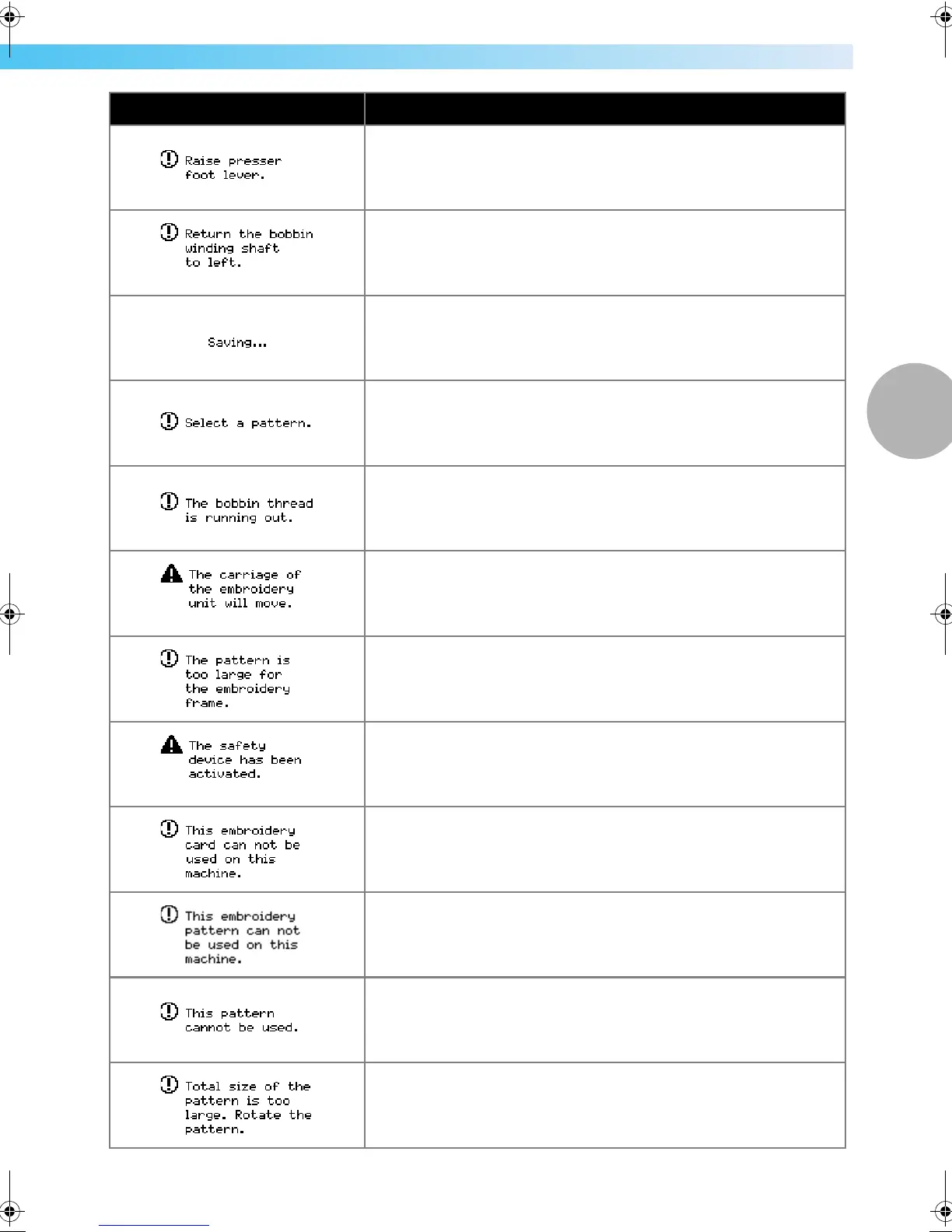This message is displayed when the embroidery unit is trying to
