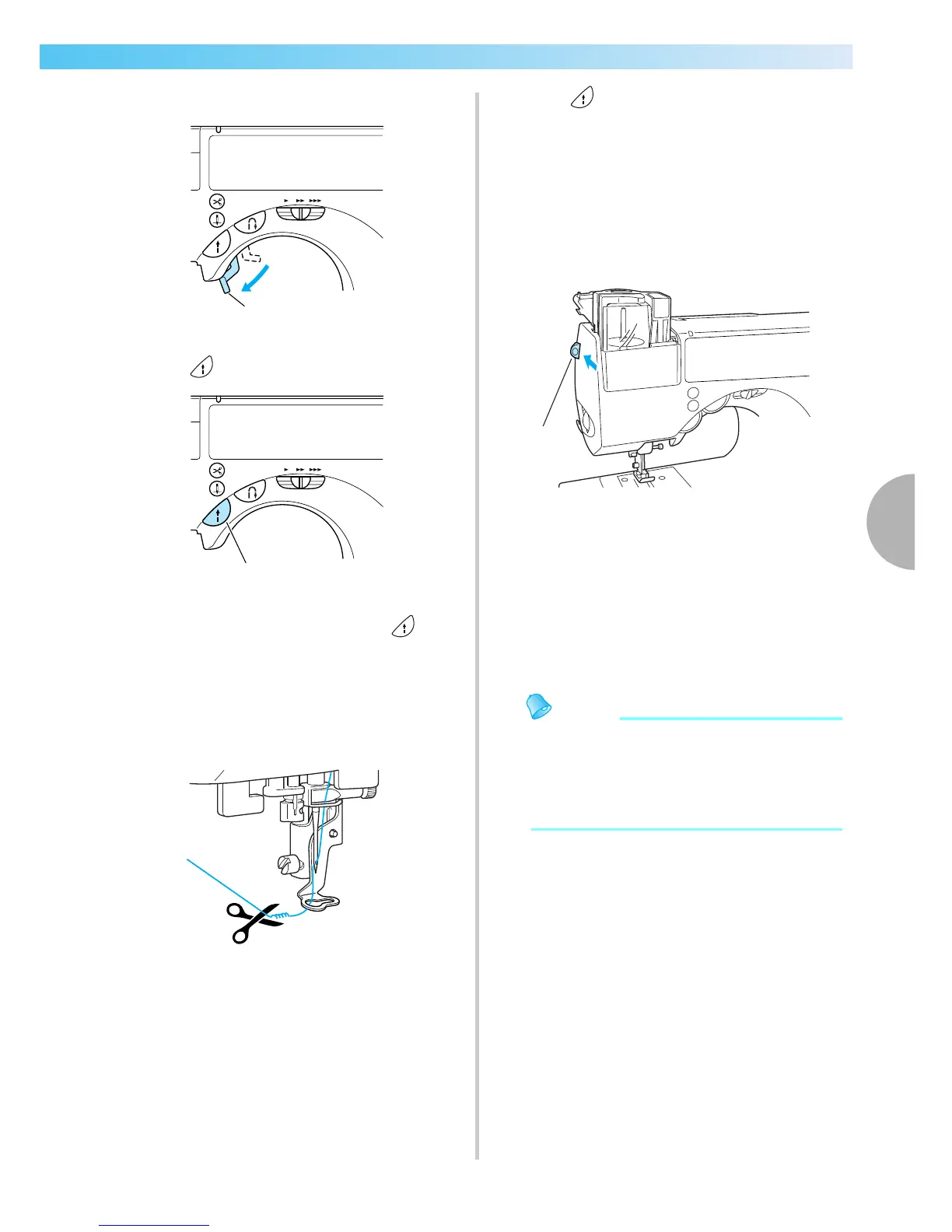 stop button), and the sewing machine will