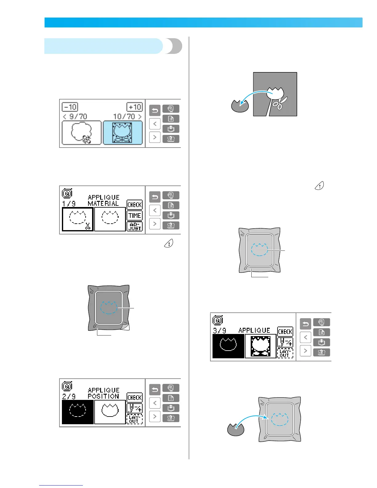 When "APPLIQUE MATERIAL" is displayed on