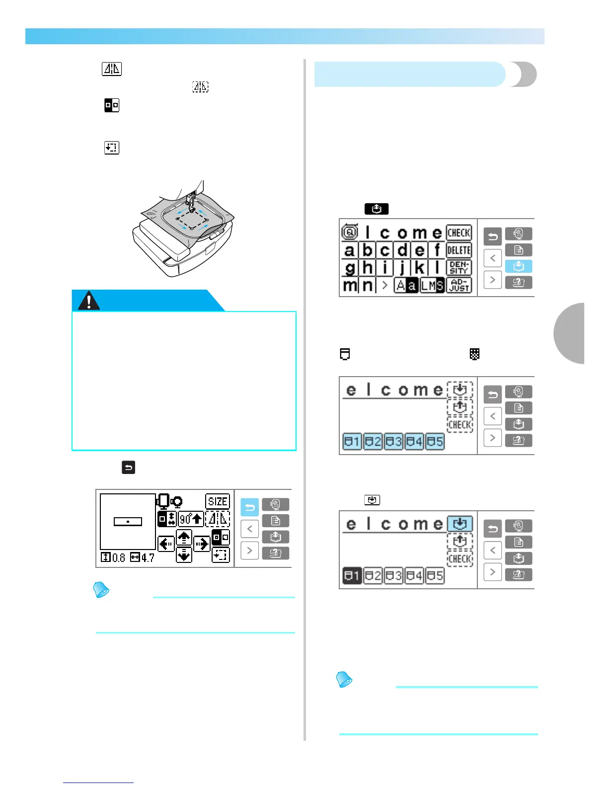 embroidery frame. Check the display for a