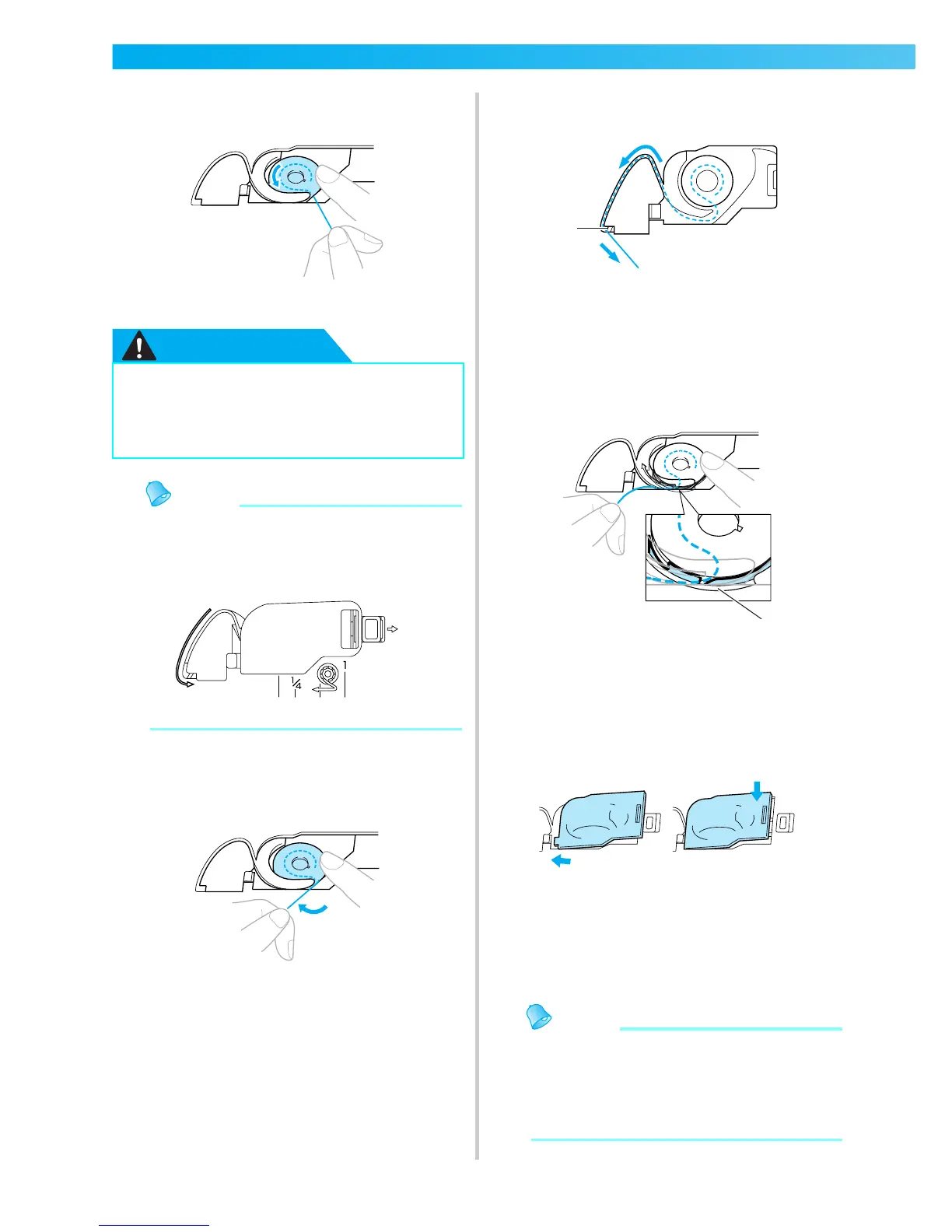 • Be sure to insert the bobbin correctly.