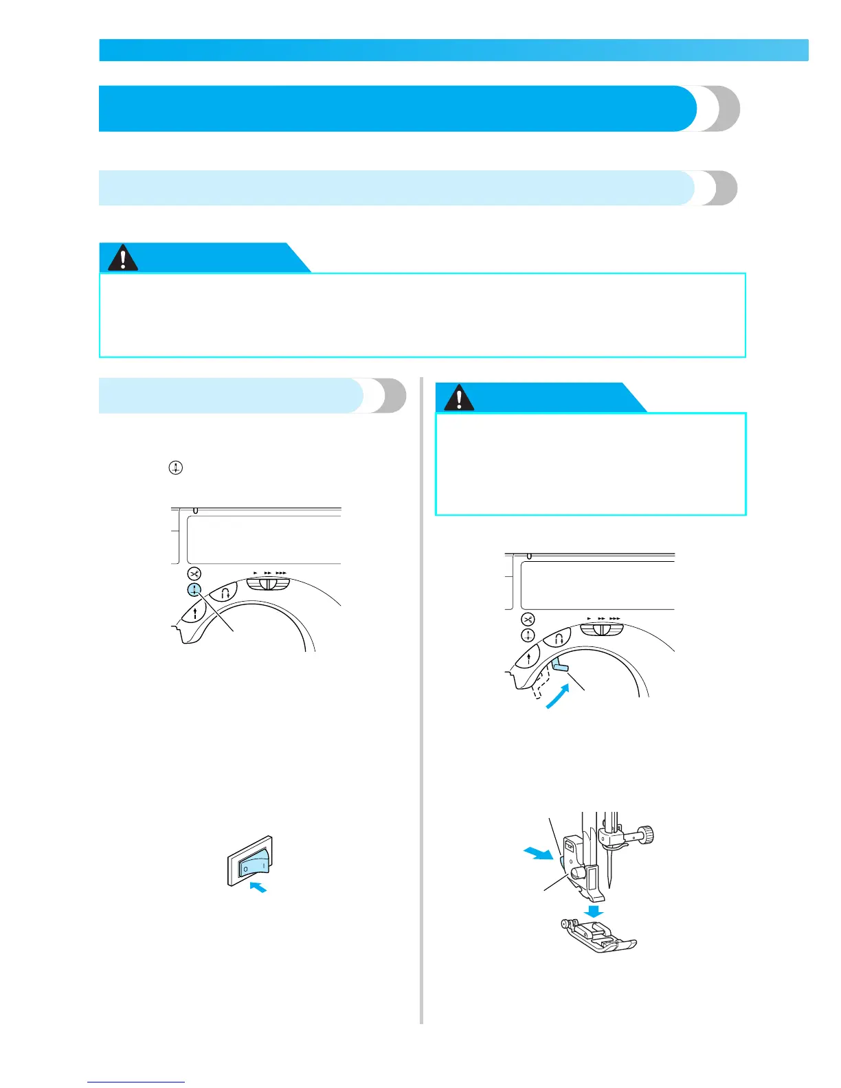 ● Before replacing the presser foot, be sure