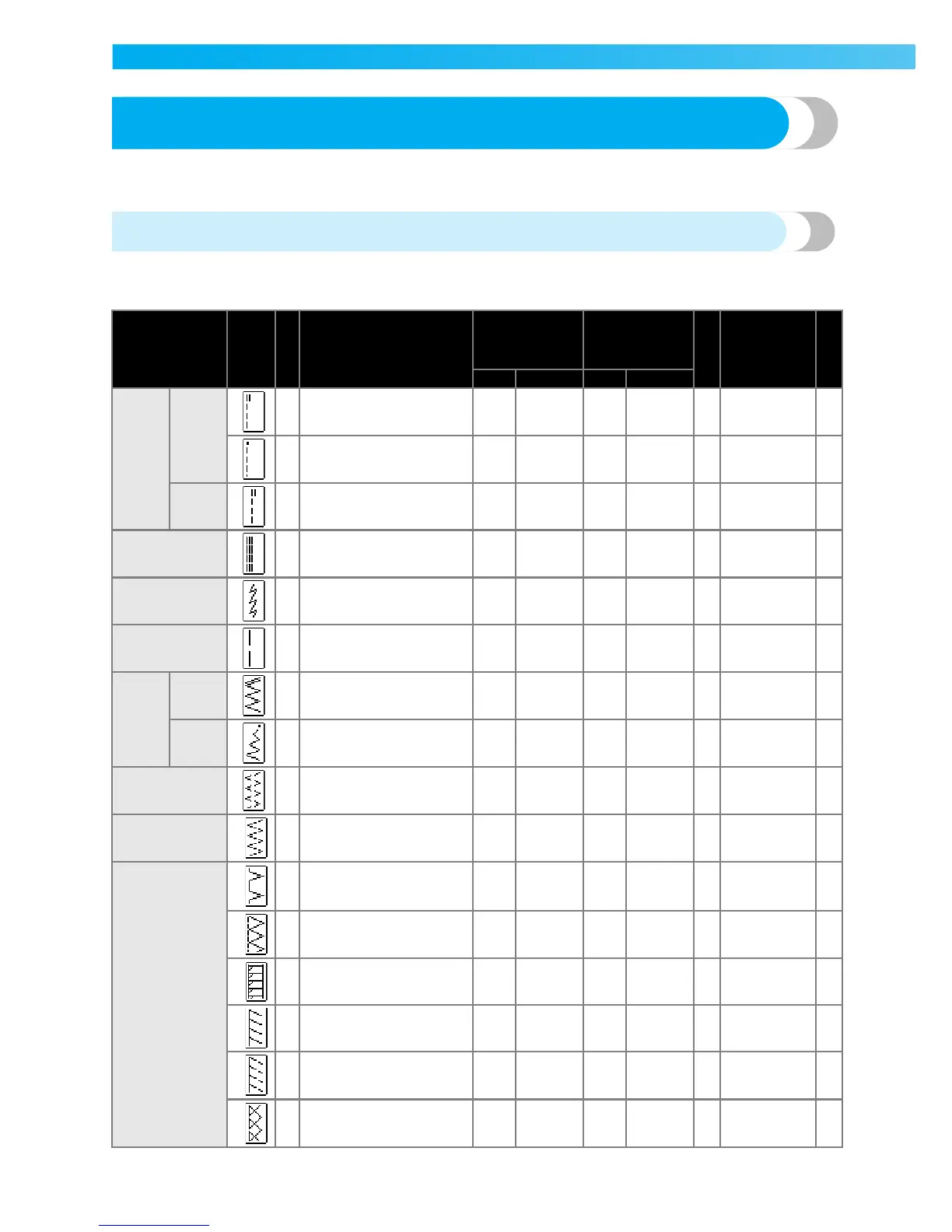 Applications, stitch lengths and widths and whether the twin needle can be used are listed for utility